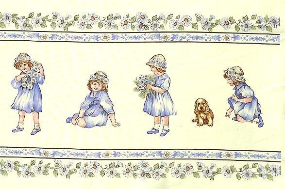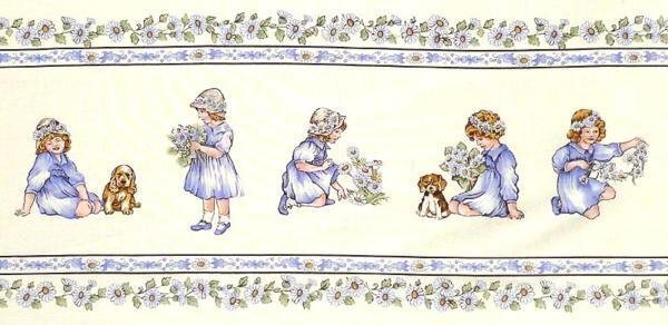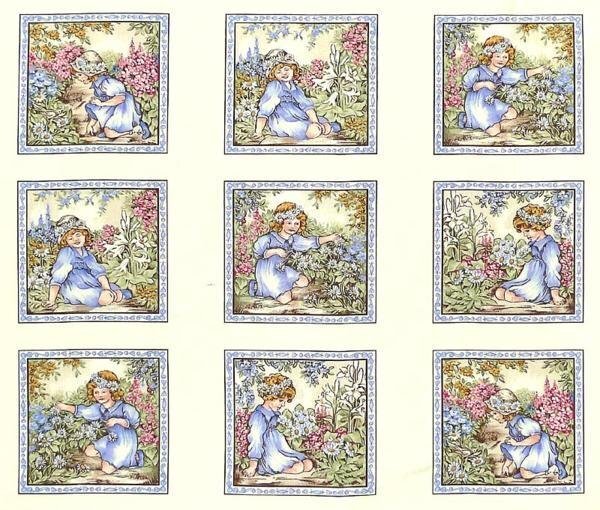 お花と子イヌと遊ぶ女の子がモチーフのパネル柄。 【FairyCotton 】