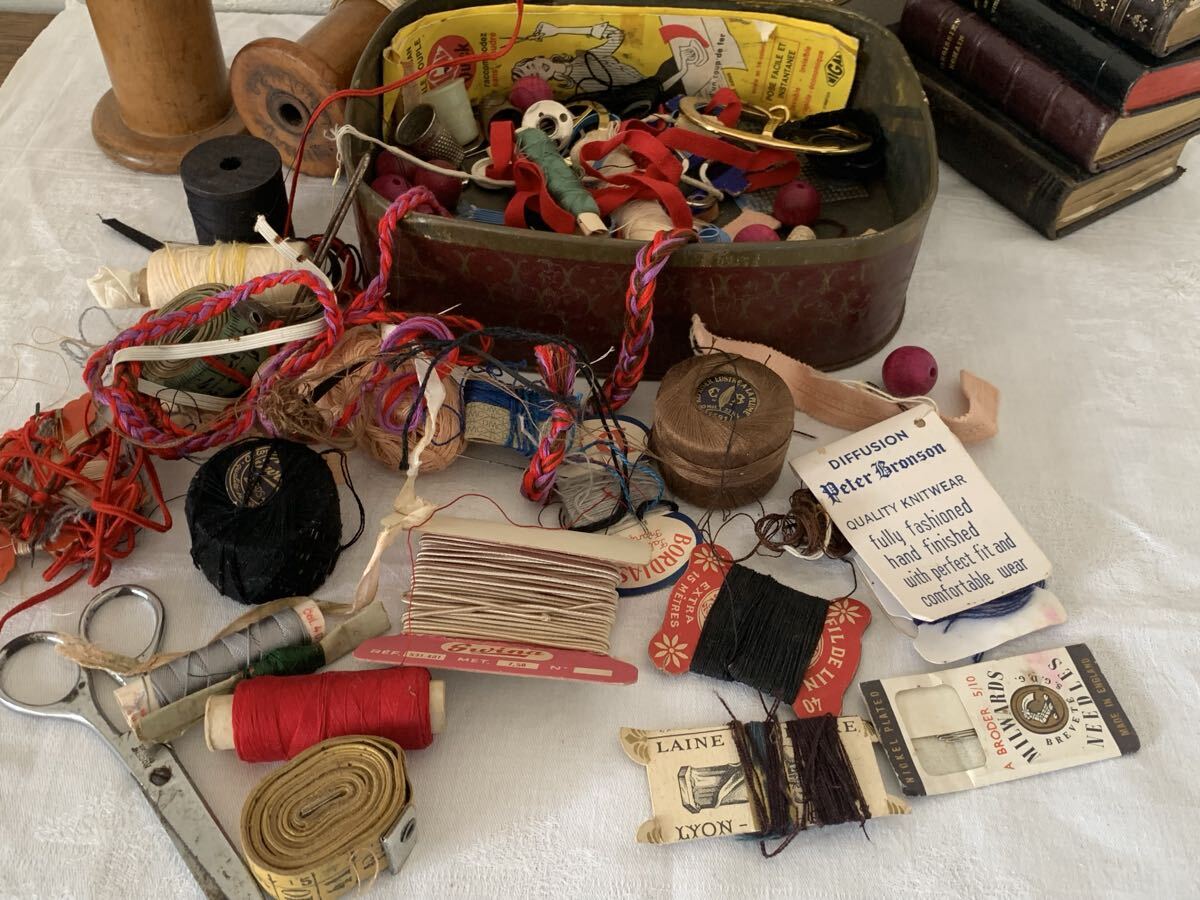 糸、はさみ、ボタン、リボンなど色々セットです。