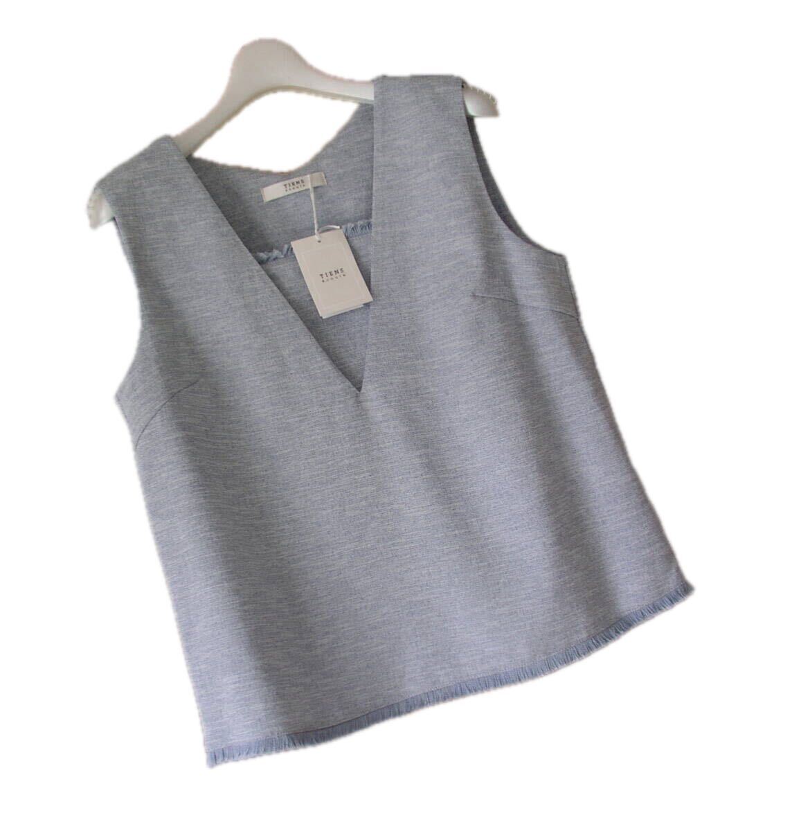 新品未使用 TIENS ecoute ティアン エクート /Mサイズ▲上質*カットソートップス*ブルーグレー