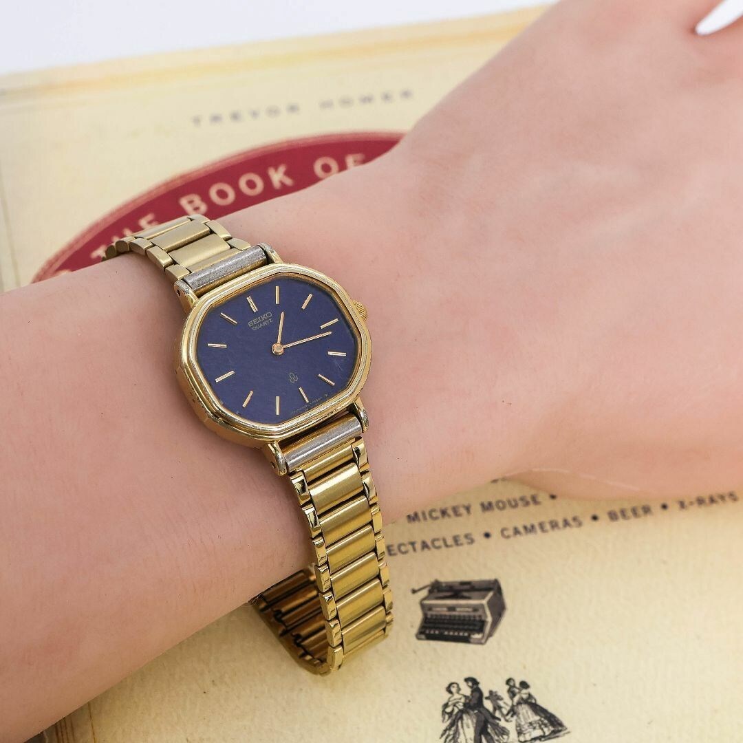 稼働 SEIKO 腕時計 ブルー特殊文字盤 水晶マーク SGP 908