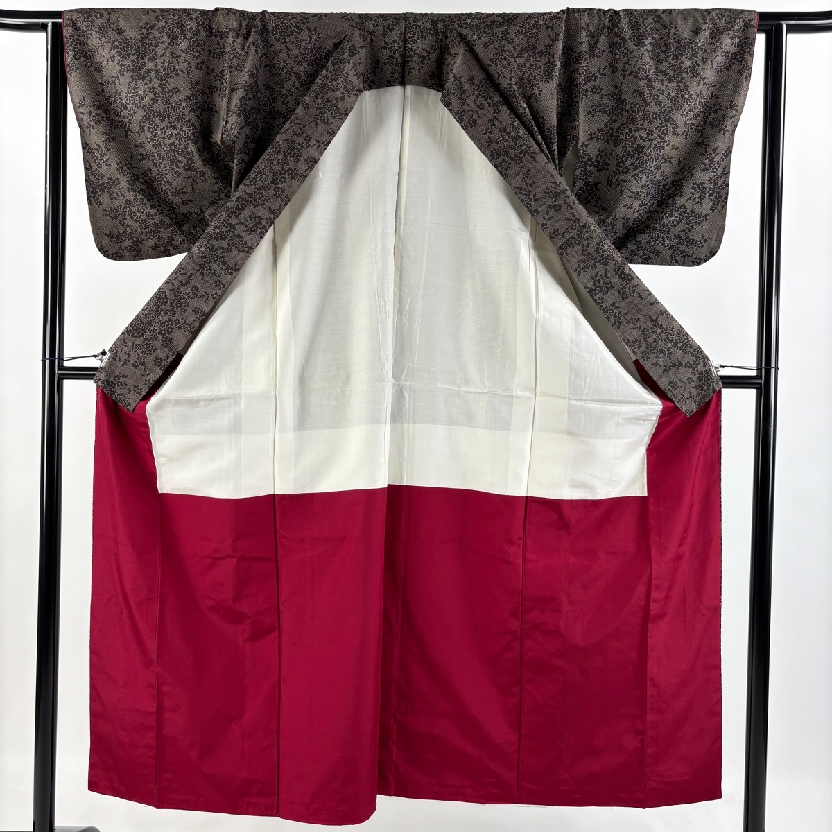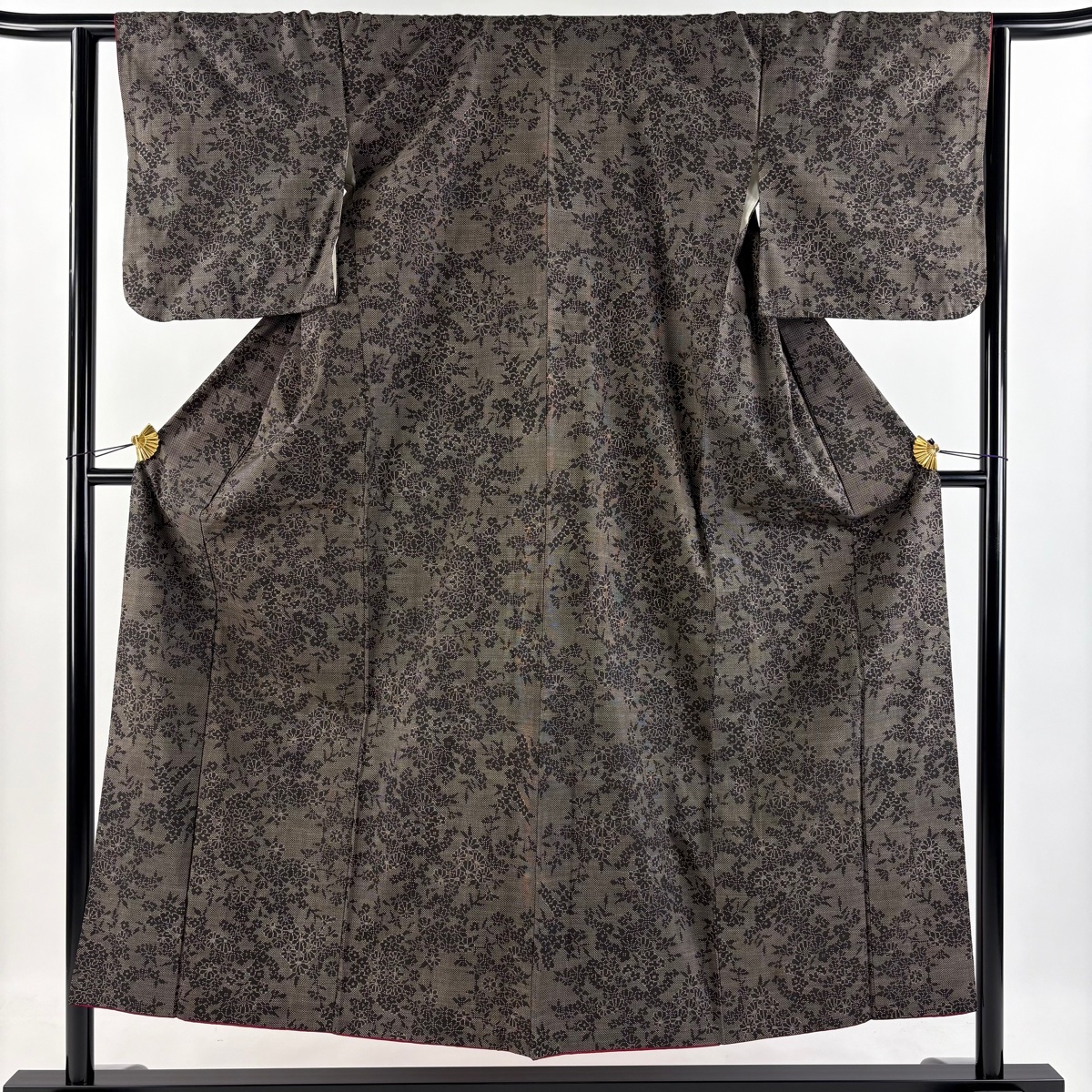 | 大島紬 秀品 証紙 純泥染 草花 焦茶色 袷 身丈152 裄丈63.5 S 正絹 【中古】 |