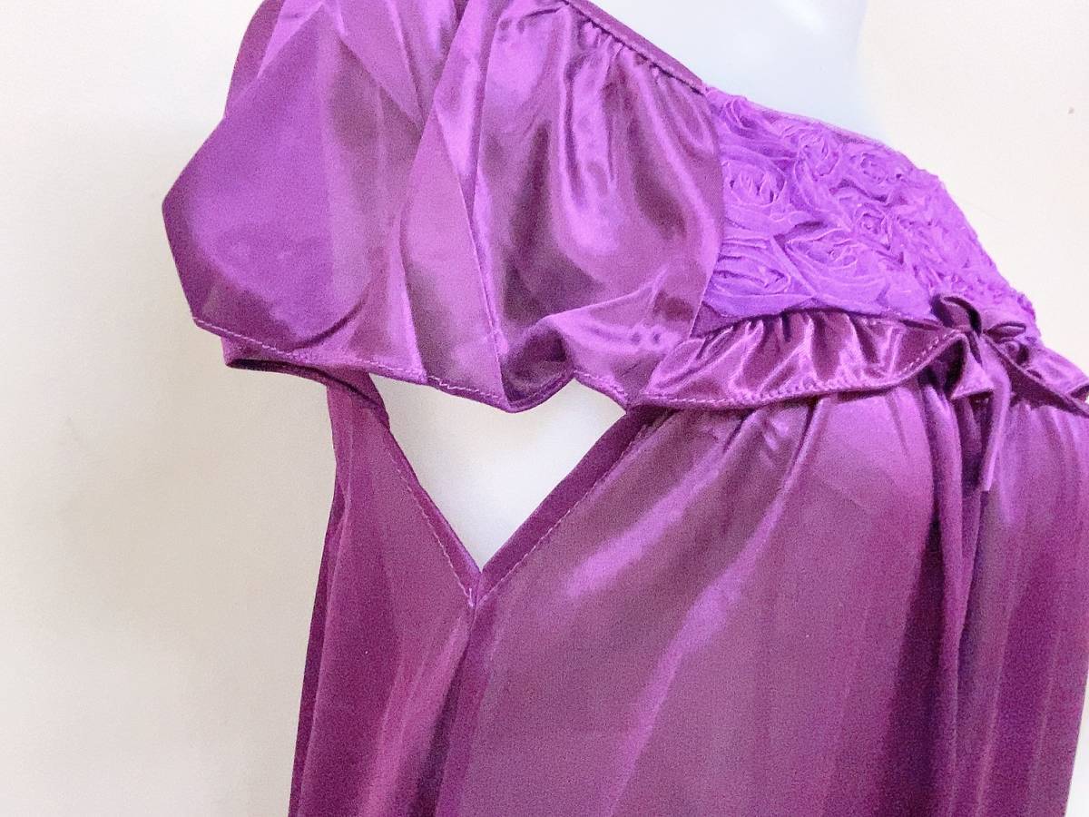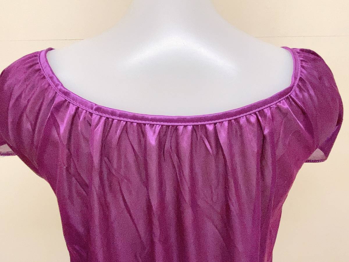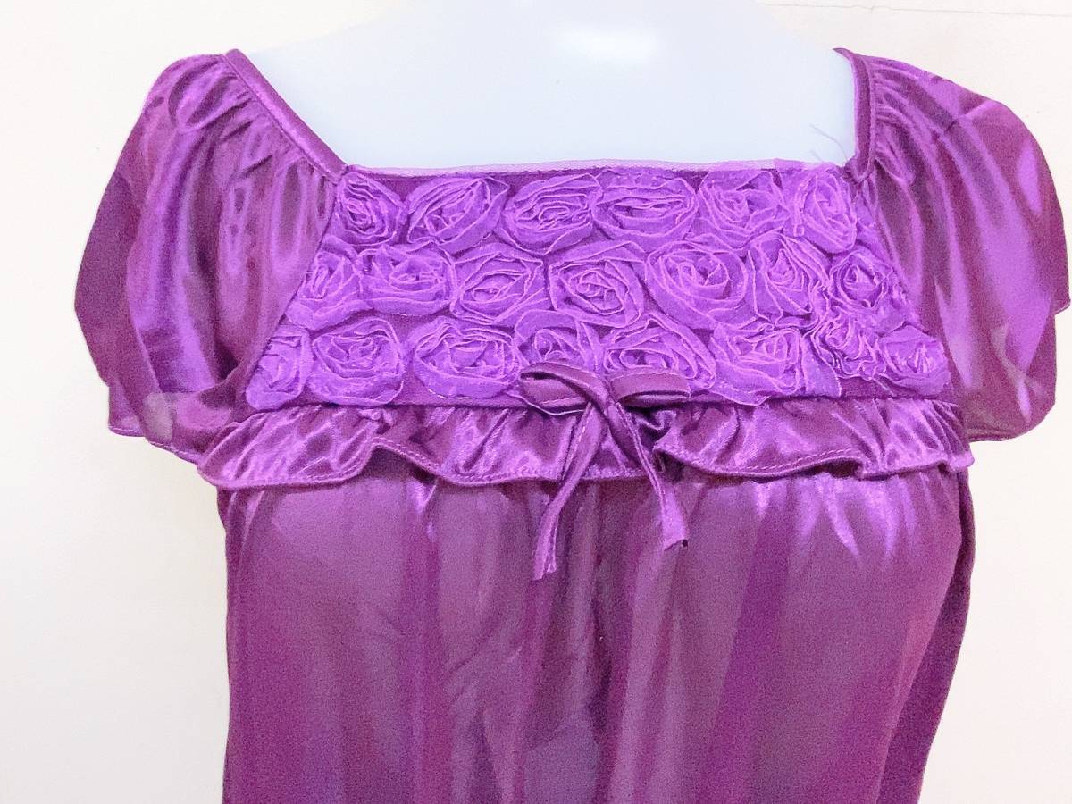 バイオレット レディース パジャマ 半袖ワンピース 着丈約95cm ポリエステル 紫 パープル スクエアネック リボン ルームウェア ネグリジェ