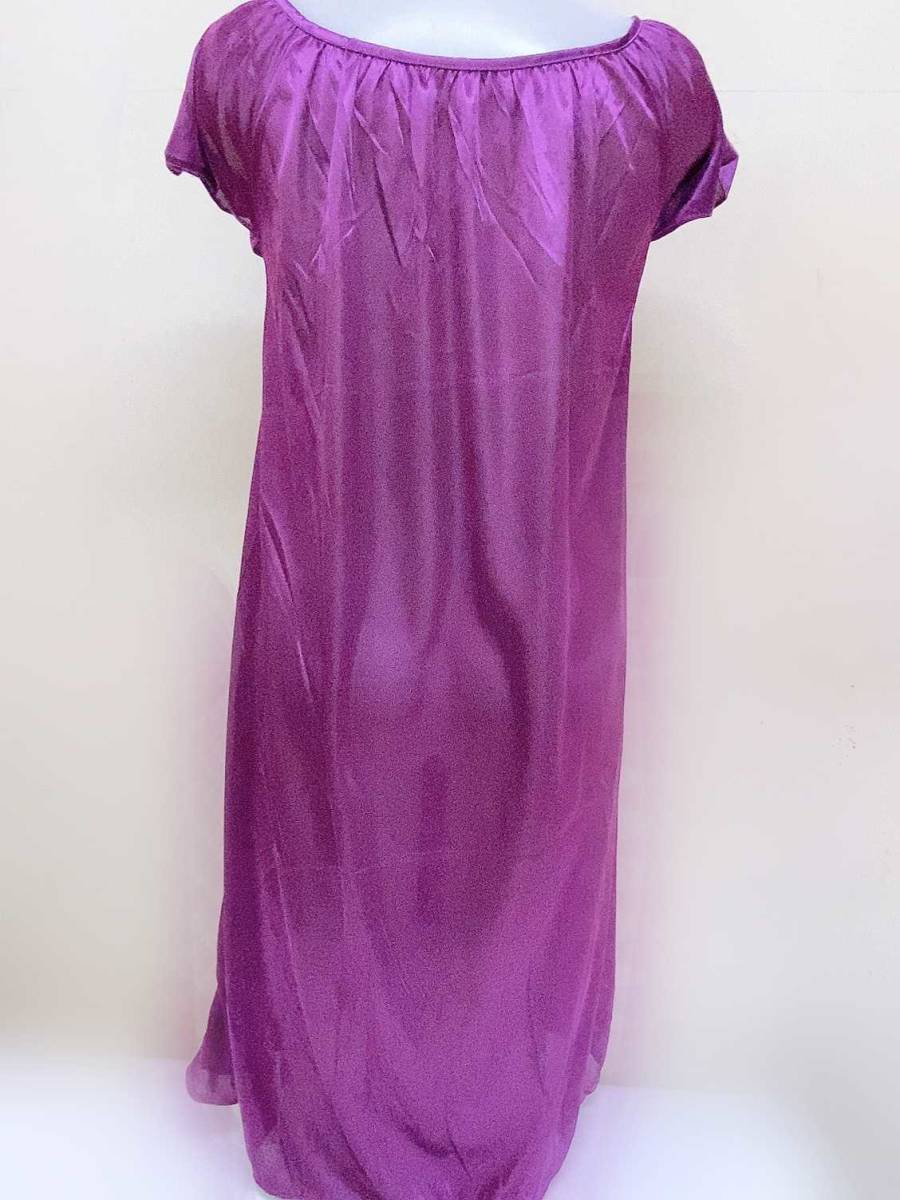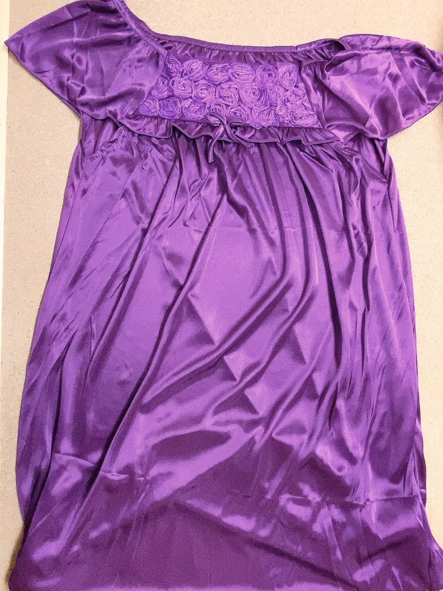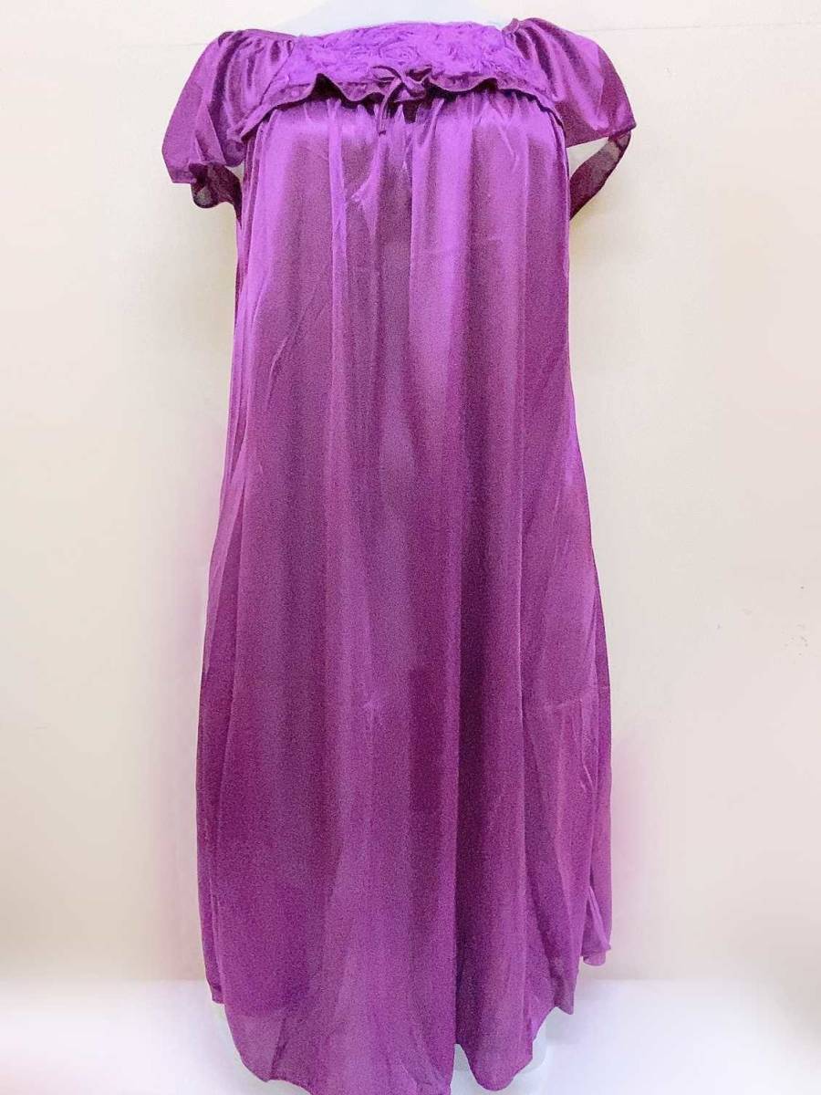 バイオレット レディース パジャマ 半袖ワンピース 着丈約95cm ポリエステル 紫 パープル スクエアネック リボン ルームウェア ネグリジェ