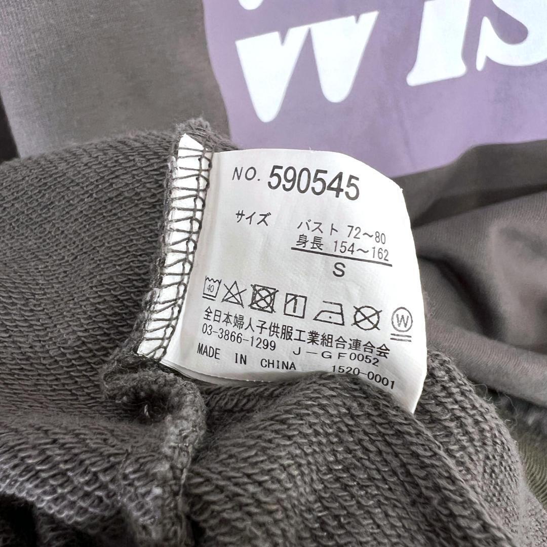 【全日本婦人子供服工業組合連合会】グレー プリント 長袖 スウェット トレーナー レディース Sサイズ【a002】