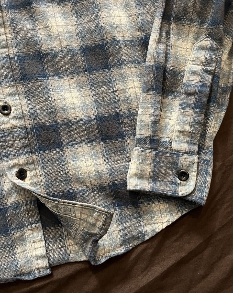 RRLの通常のフランネルシャツの倍以上の、インディゴ染め糸を含めた幾種もの糸が使用されており、奥行きのある表情は本作ならではの特徴。