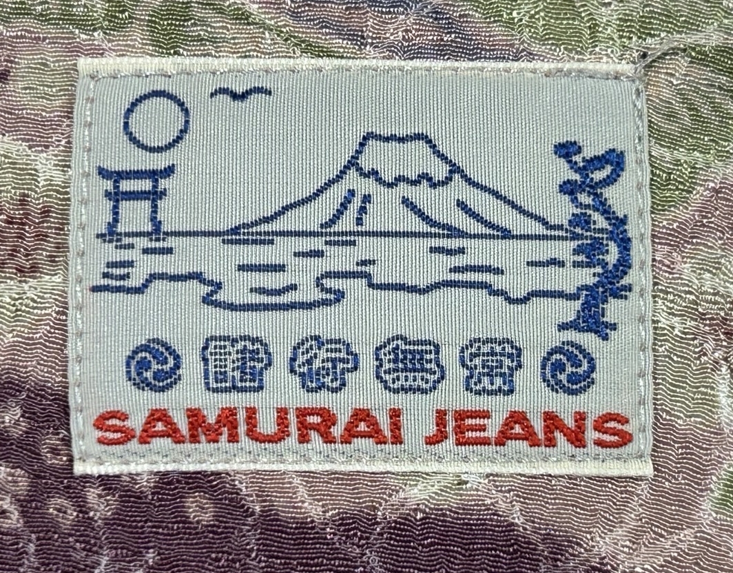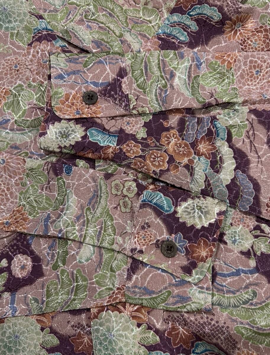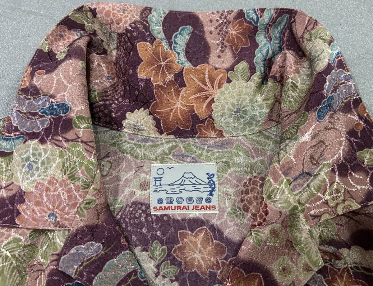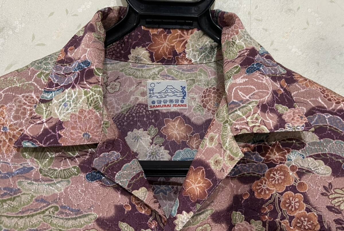 *サムライジーンズ SAMURAI JEANS 諸行無常 和柄 総柄 ちりめん オープンカラー 開襟 長袖シャツ S          BJBE.H
