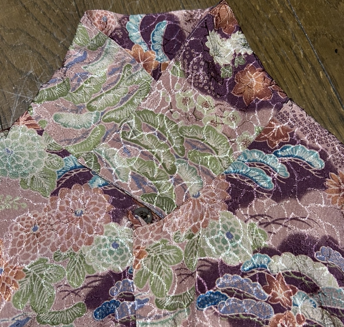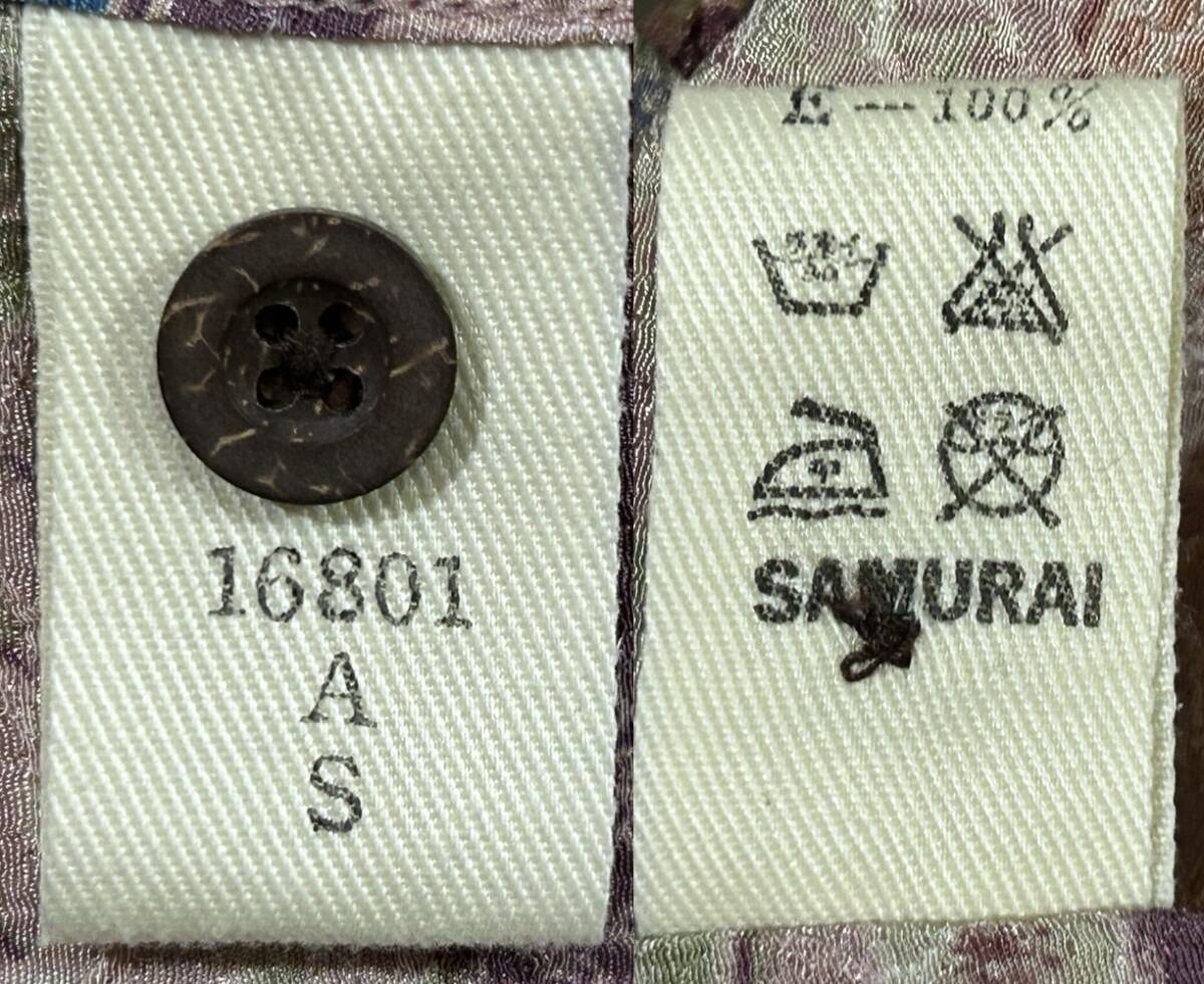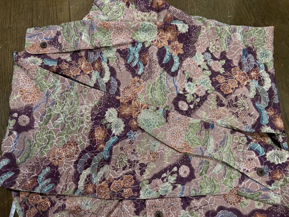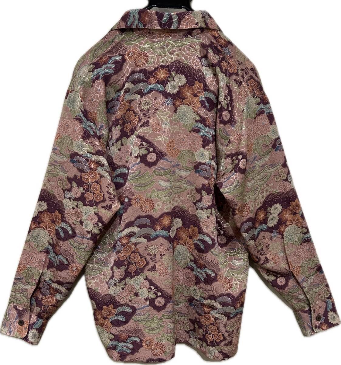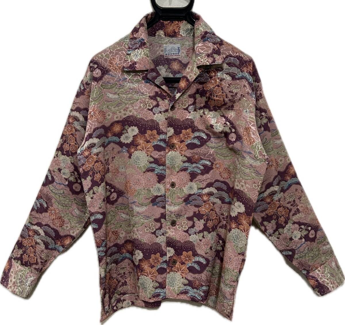 *サムライジーンズ SAMURAI JEANS 諸行無常 和柄 総柄 ちりめん オープンカラー 開襟 長袖シャツ S       BJBE.H
