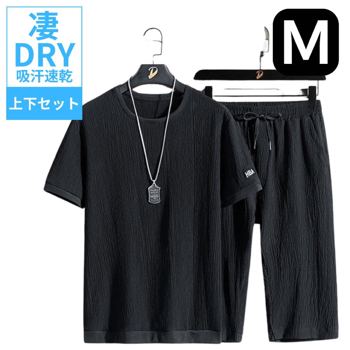 セットアップ上下 メンズ ルームウェア 半袖 半パン シワ加工 吸汗速乾