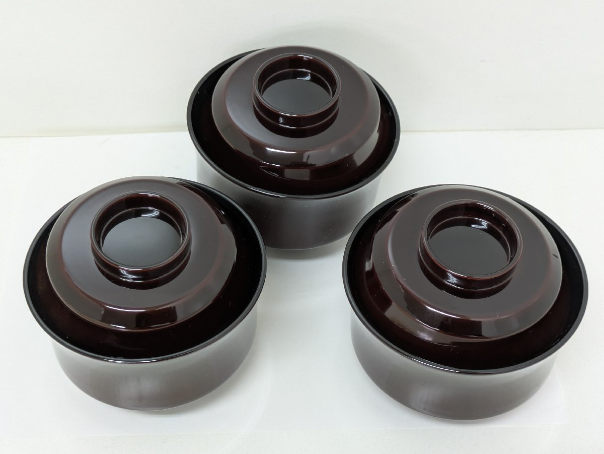 ♪いが商店 漆器 ふた付き 御吸物椀 3個セット 木箱付き 中古