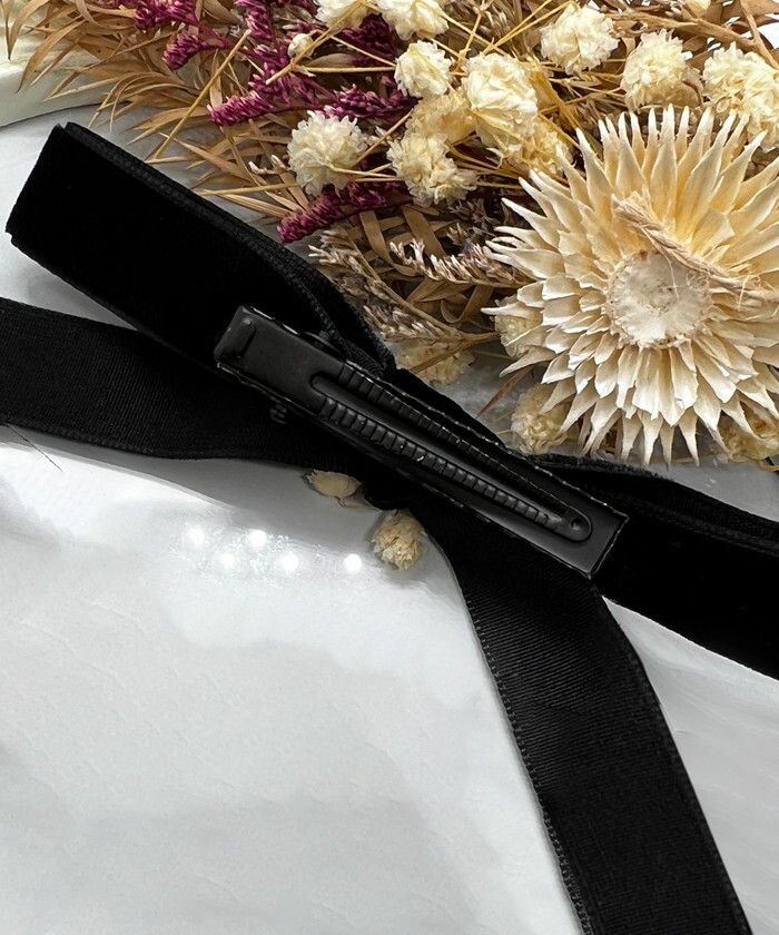 商品説明 | ・・ブラックリボンのかわいいヘアクリップ。 ・留めるだけで簡単にアレンジができ、大人っぽい印象に仕上げてくれるアイテム。 |