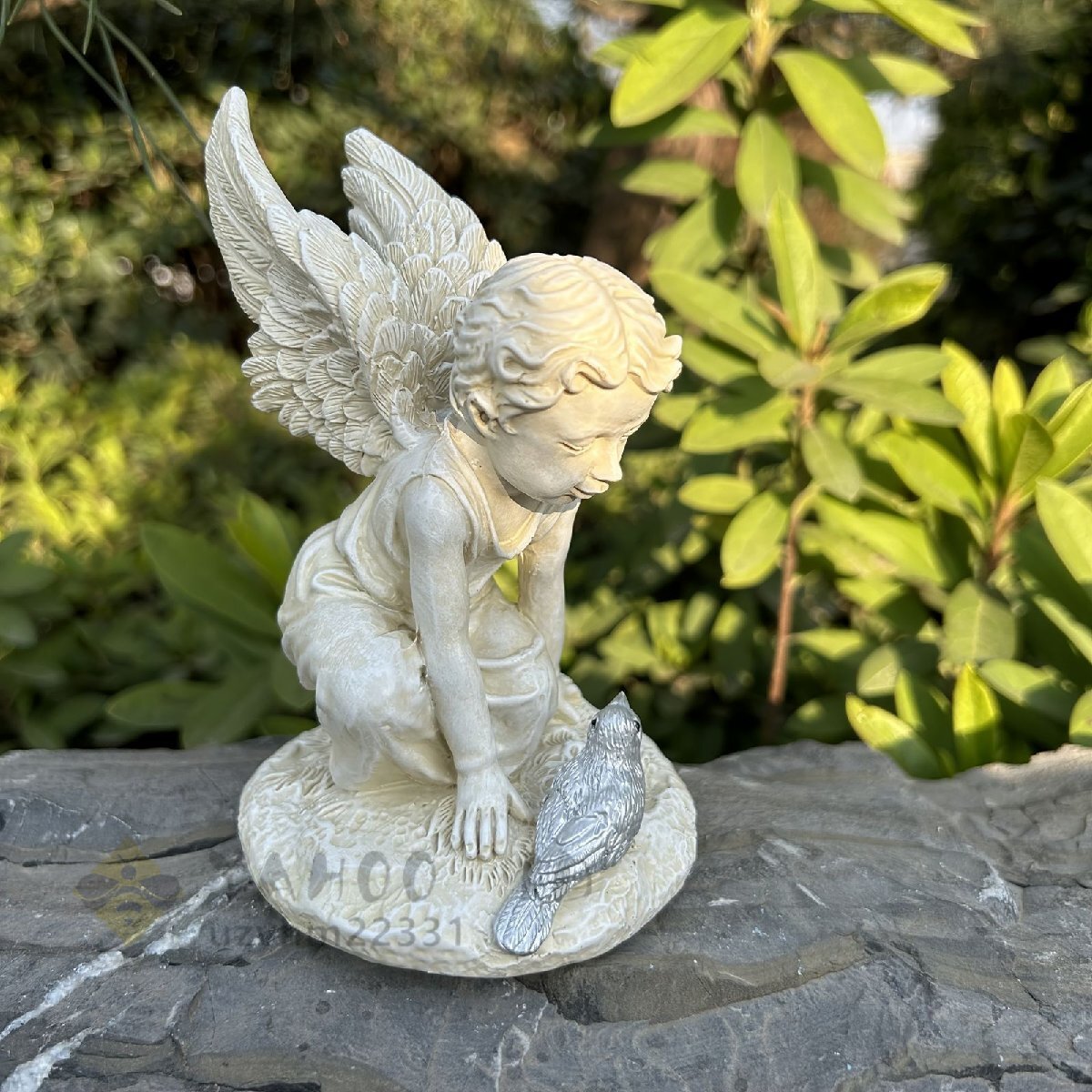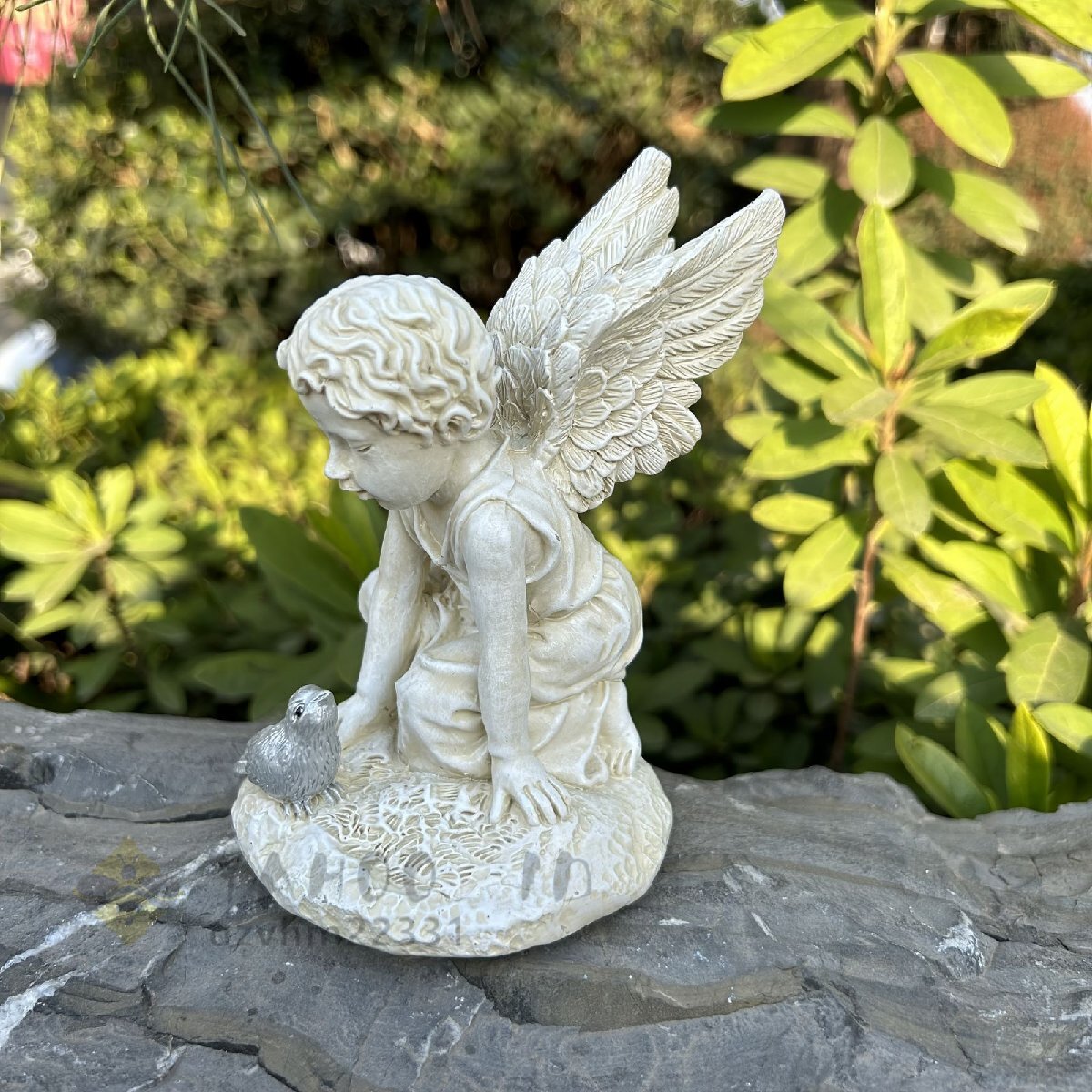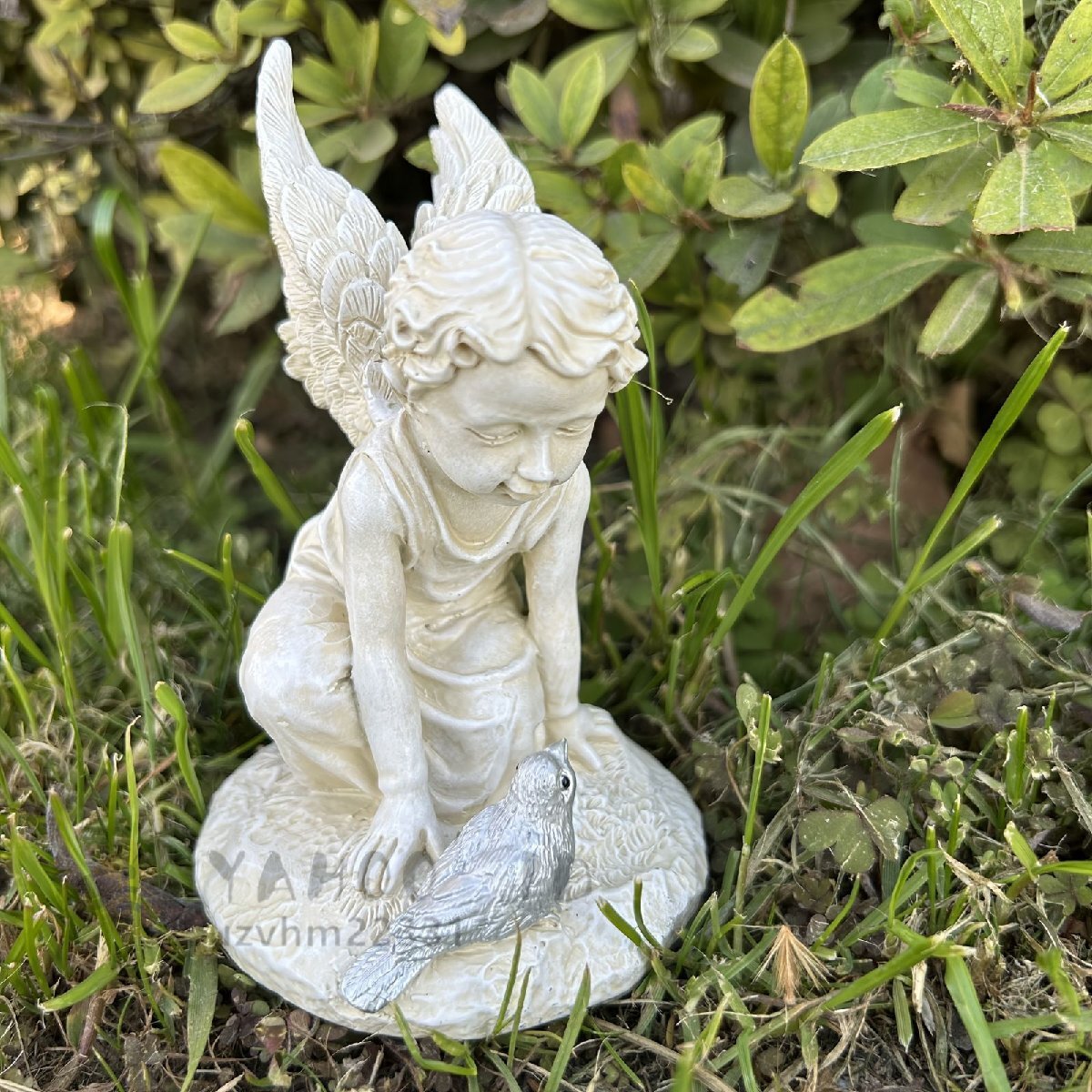 美しい鳥と遊ぶ天使のオブジェが、あなたのガーデンや室内を華やかに彩ります。このエンジェルの彫刻風デザインは、古典的な美しさと現代的なセンスを兼ね備えており、どんなインテリアにもマッチします。樹脂製なので、屋外でも安心してご使用いただけます。玄関やリビング、ダイニングなど、どこに置いても癒しの空間を演出します。また、オシャレなギフトとしても喜ばれる一品です!