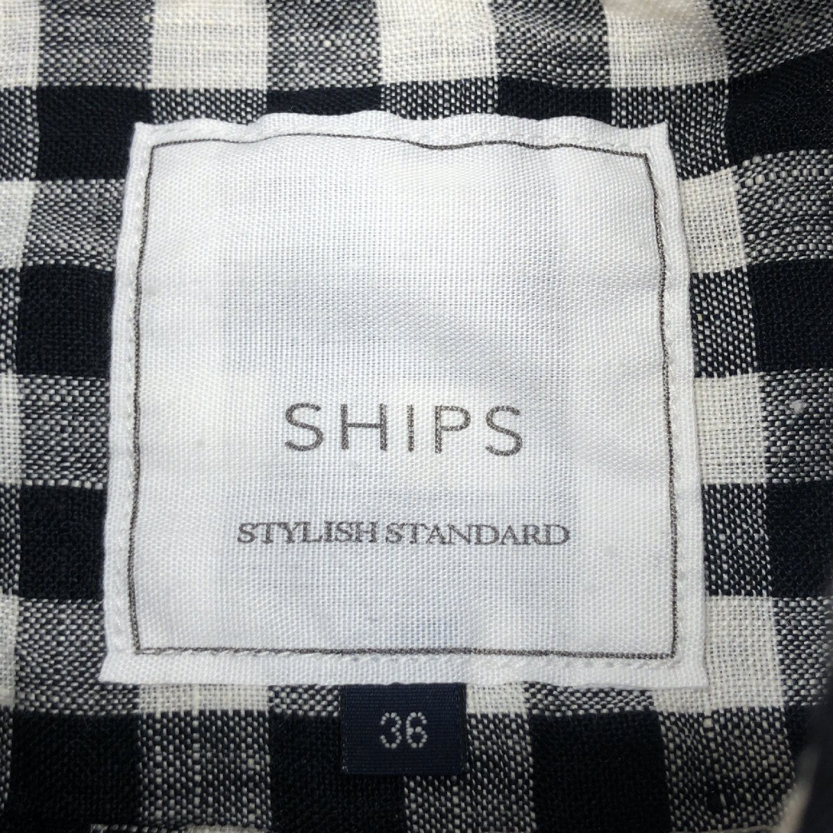 美品 SHIPS シップス 麻 リネン100% バンドスリーブ ギンガムチェック シャツ 36 白×黒 日本製 ブラウス 半袖 レディース 婦人