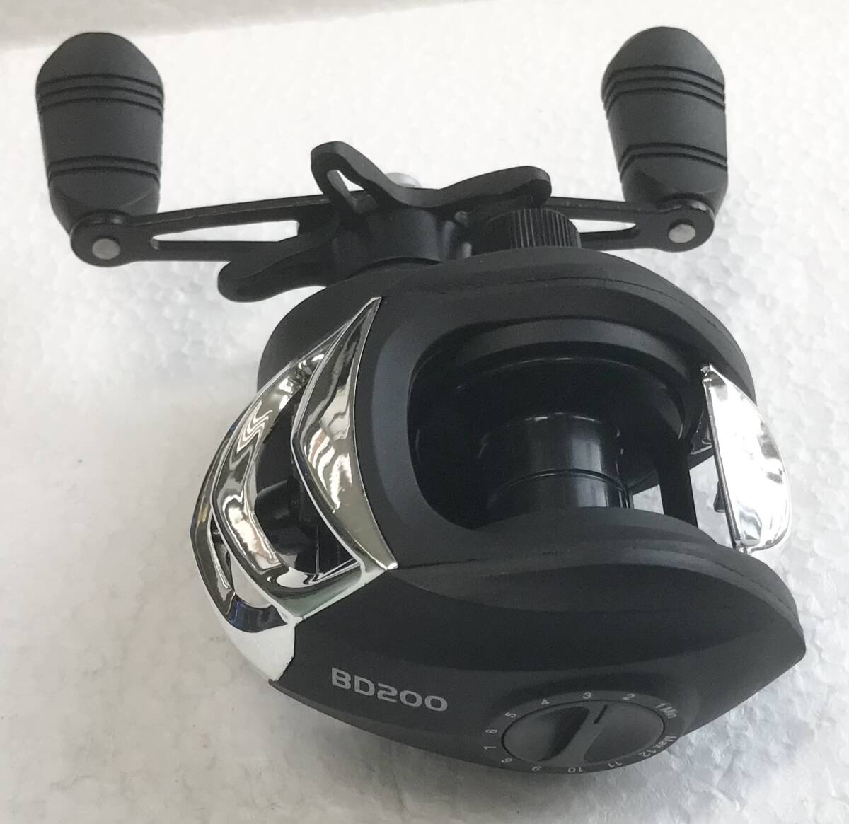 写真のベイトキャスティングリール ブラックデーモン右ハンドル(新品未使用)を発送します(送料無料)。