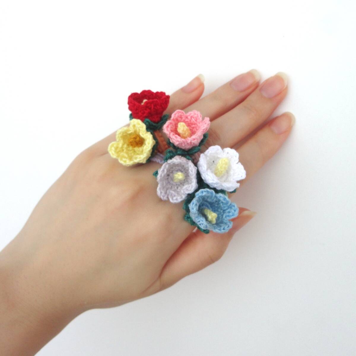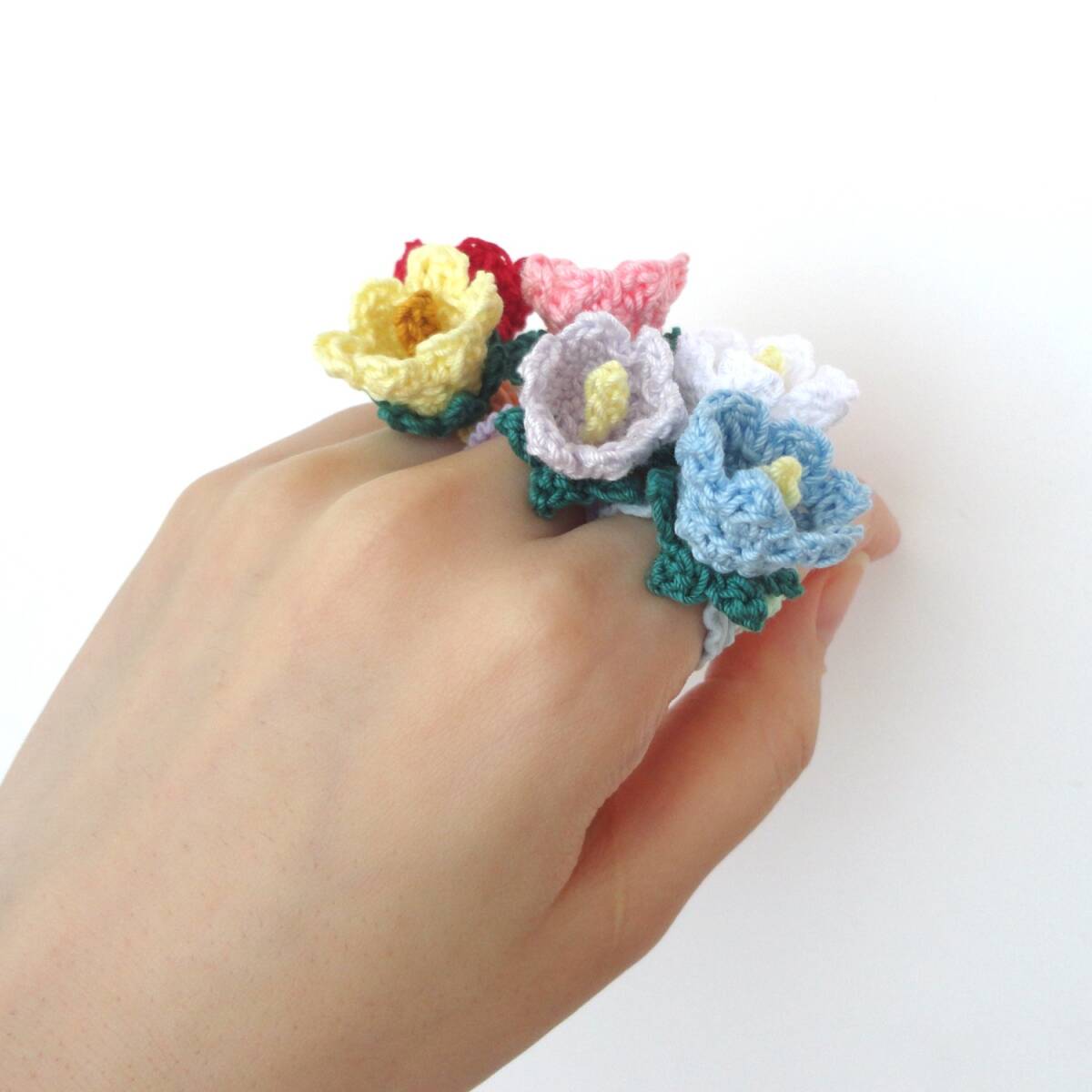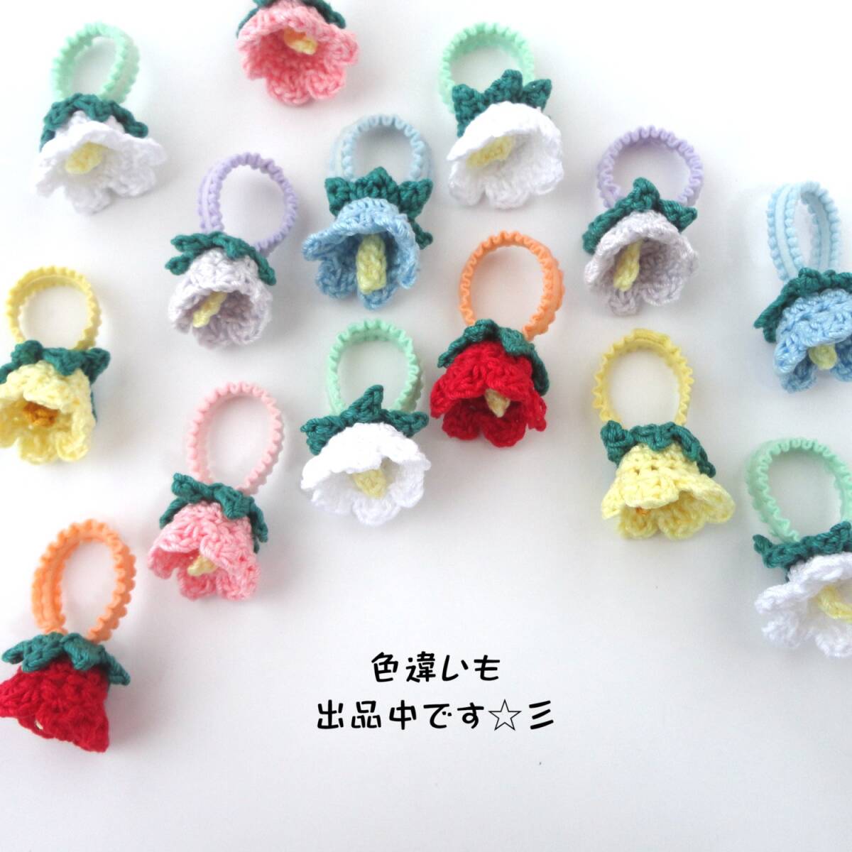 2個セット☆彡つりがね草のヘアゴム*レース編み*ハンドメイド*WH*b877