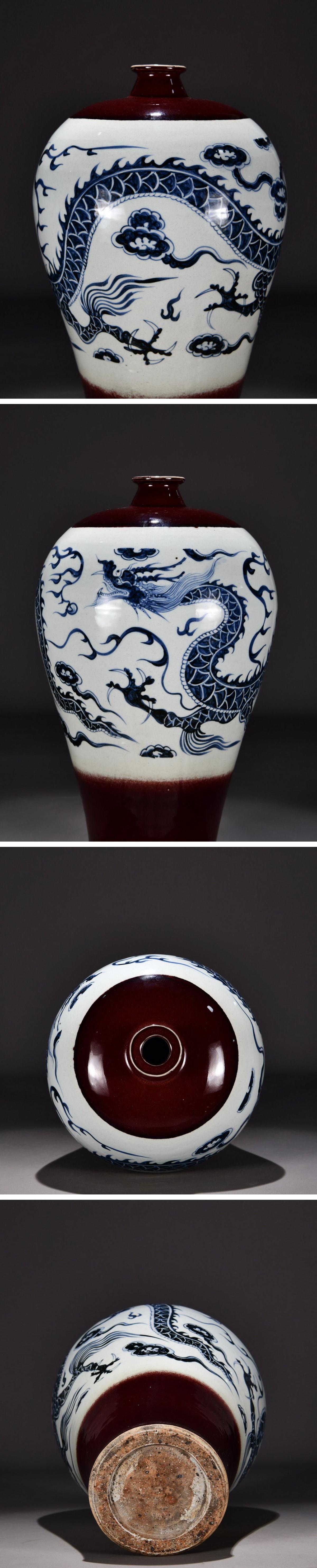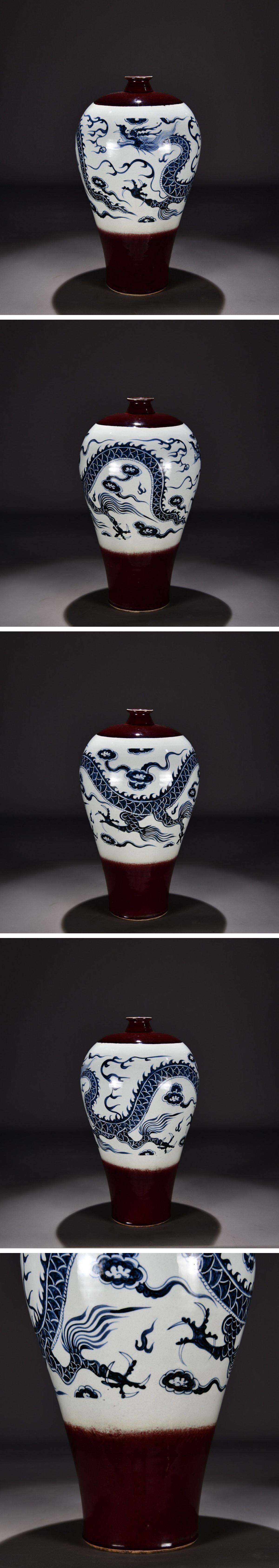 【清】某有名オークション購入 元時代 青花雲龍紋梅瓶 古置物 古擺件 中国伝来 古美術 時代コレクション7L6-NU3