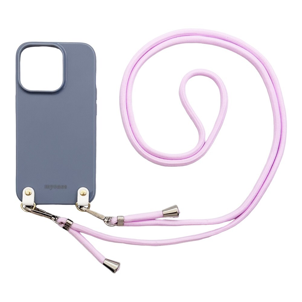 iPhone14 Pro アイフォン14プロ(くすみブルー/ライトピンク)ひも TPU ストラップ 肩掛け 首かけ 斜めが スマホケース かわいい