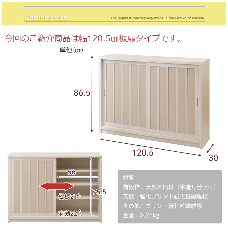 ■商品の仕様/前板枠:桐材(ウレタン樹脂塗装)、扉枠内:天然木化粧繊維板(ウレタン樹脂塗装)、天板:強化プリント紙化粧繊維板、その他:プリント紙化粧繊維板