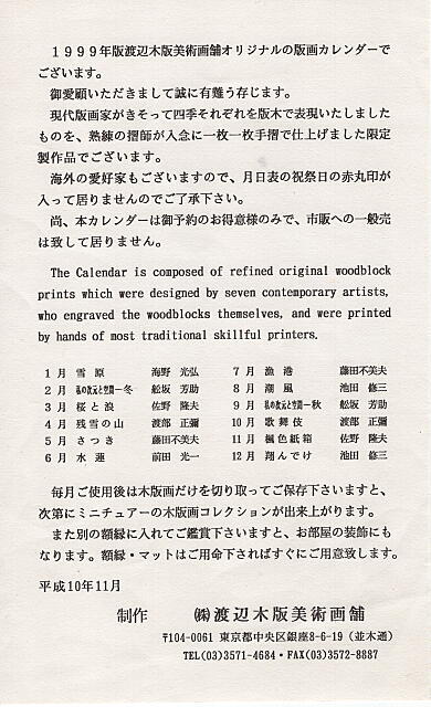 ・技法  木版画(株)渡辺木版美術画鋪オリジナル版画カレンダー10月です