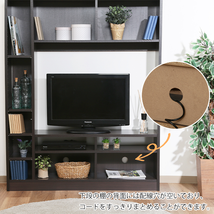 下部の収納には背面にコード穴が空いておりAV機器の設置が可能です。