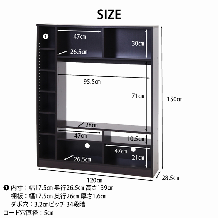 サイズ(約):幅1200×奥行285×高さ1500mm