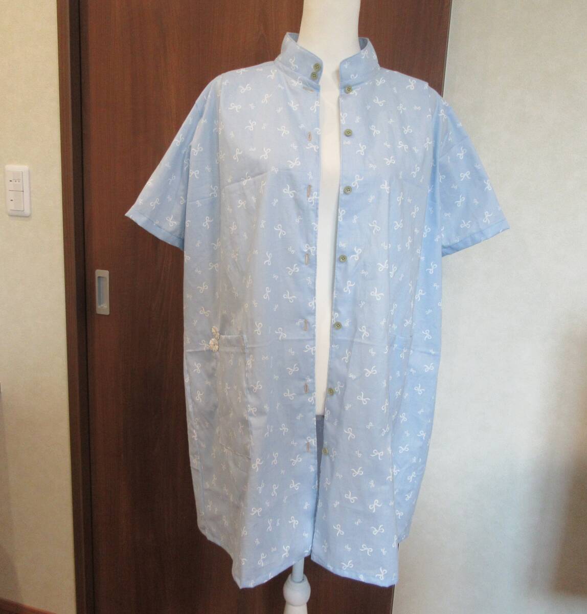 ハンドメイド ロングシャツ、羽織にも、スタンド襟。