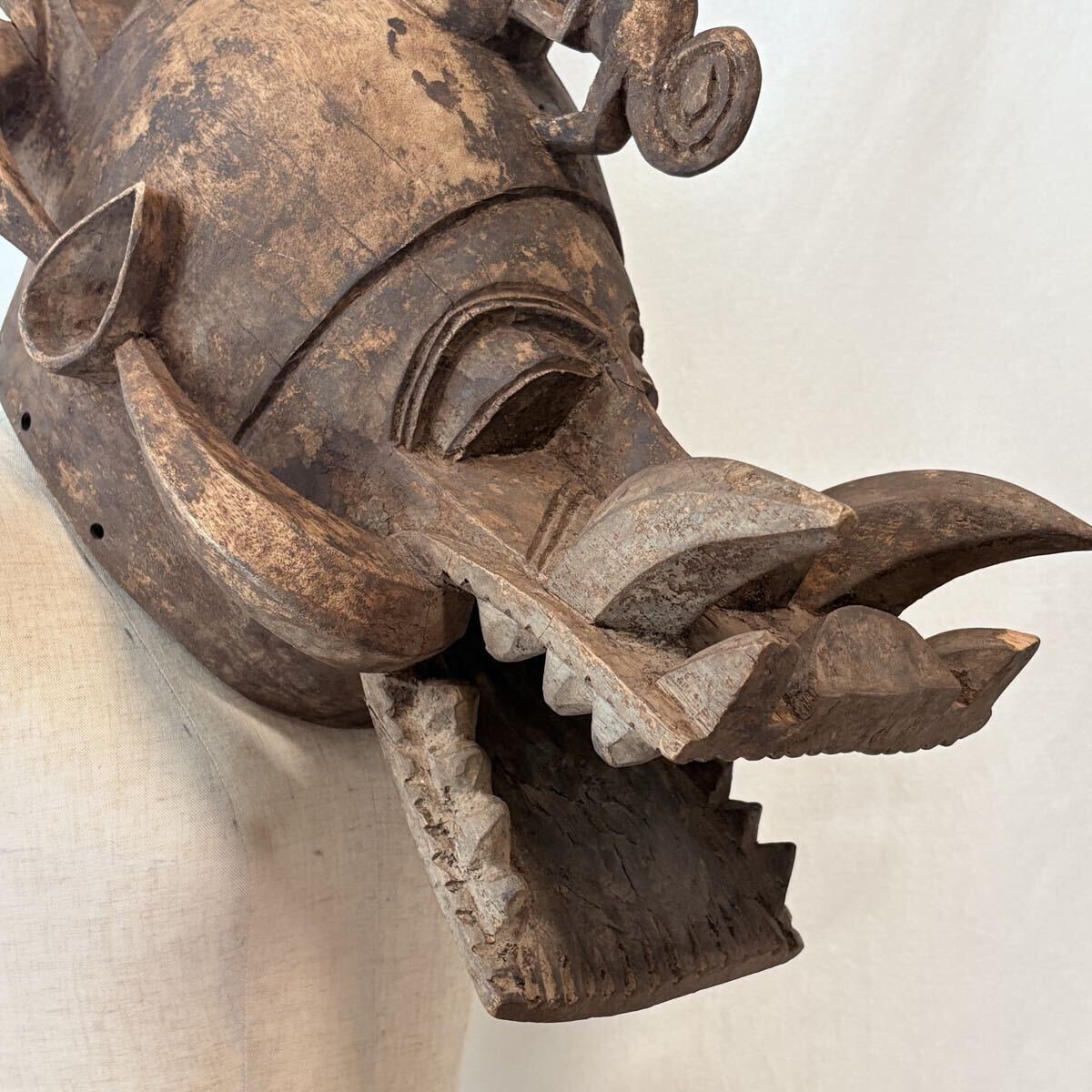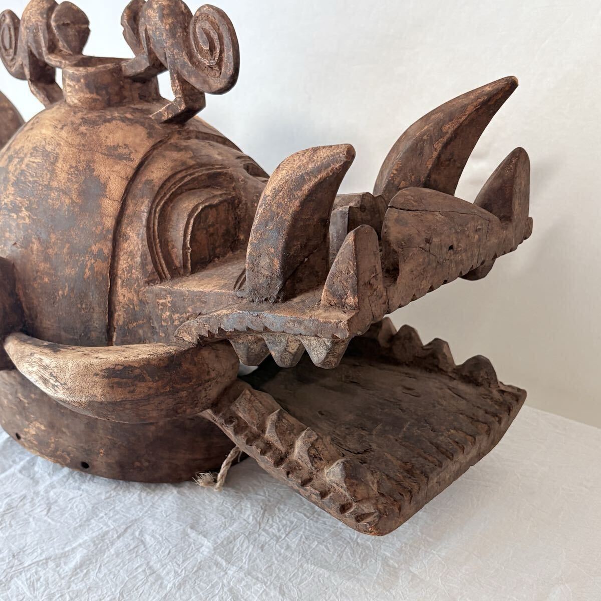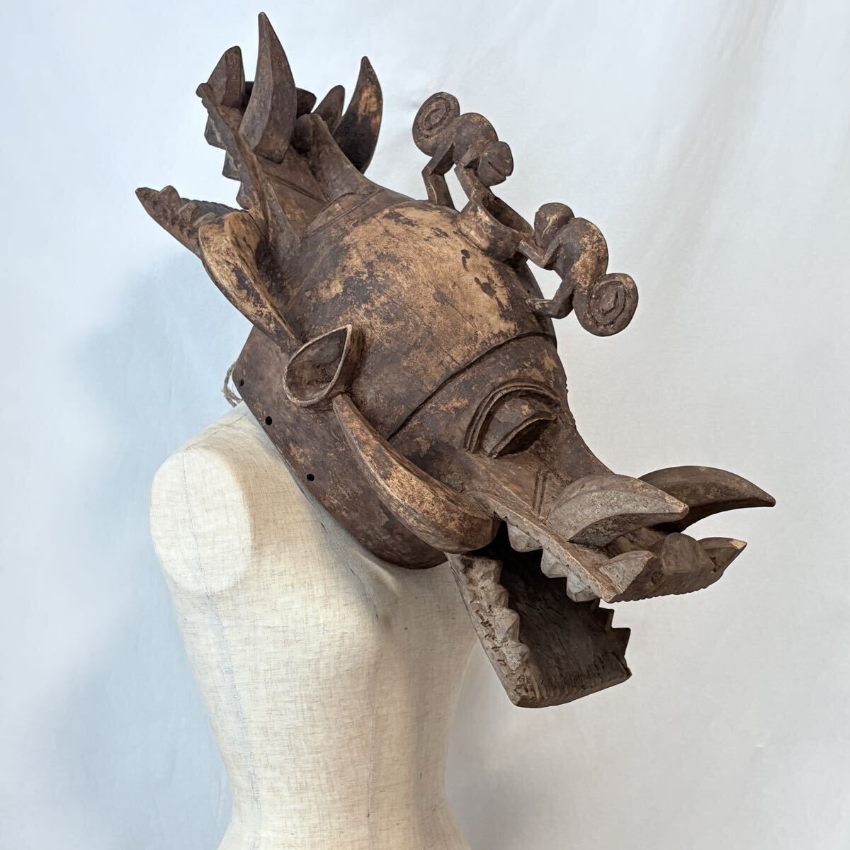 コートジボワール セヌフォ族 両頭マスク 祈祷師 マスク アフリカ アンティーク プリミティブアート / 仮面 木彫り 彫刻 民族 民芸