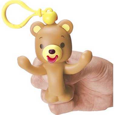 約10cm弱のかわいらしい動物のマスコットにキーホルダーが付いています。「いないいない」のポーズで目を隠していますが、わきの下を押すと、腕を開き、「ばー!」のポーズと同時に舌を出して、「べー」と笛が鳴ります。簡単にかわいらしい「いないいないばー」遊びができる商品。