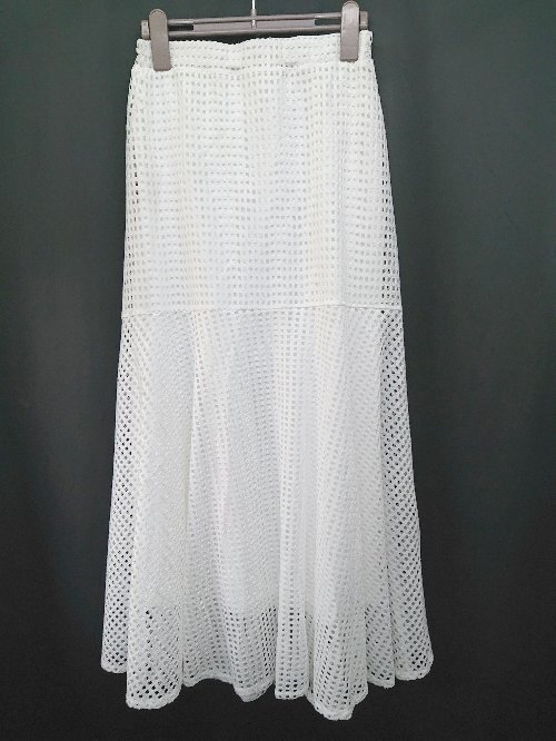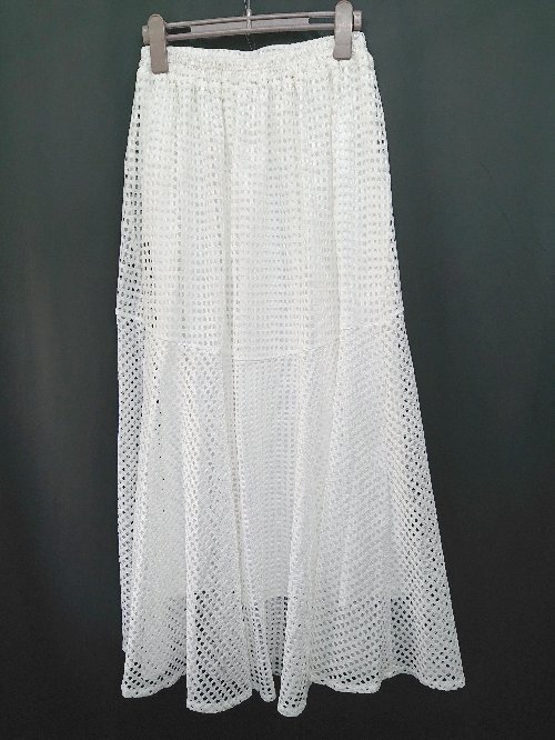 ◇ ⊂ ◎ ●未使用● marvelous by PIERROT タグ付き メッシュ風 ロング フレア スカート サイズPM ホワイト レディース E