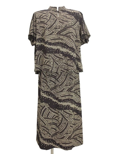 シセンドウ 詩仙堂 HITOSHI TAMURA ちりめん 縮緬 セットアップ ブラウス スカート 黒 ブラック 和柄 プリント 総柄 レディース