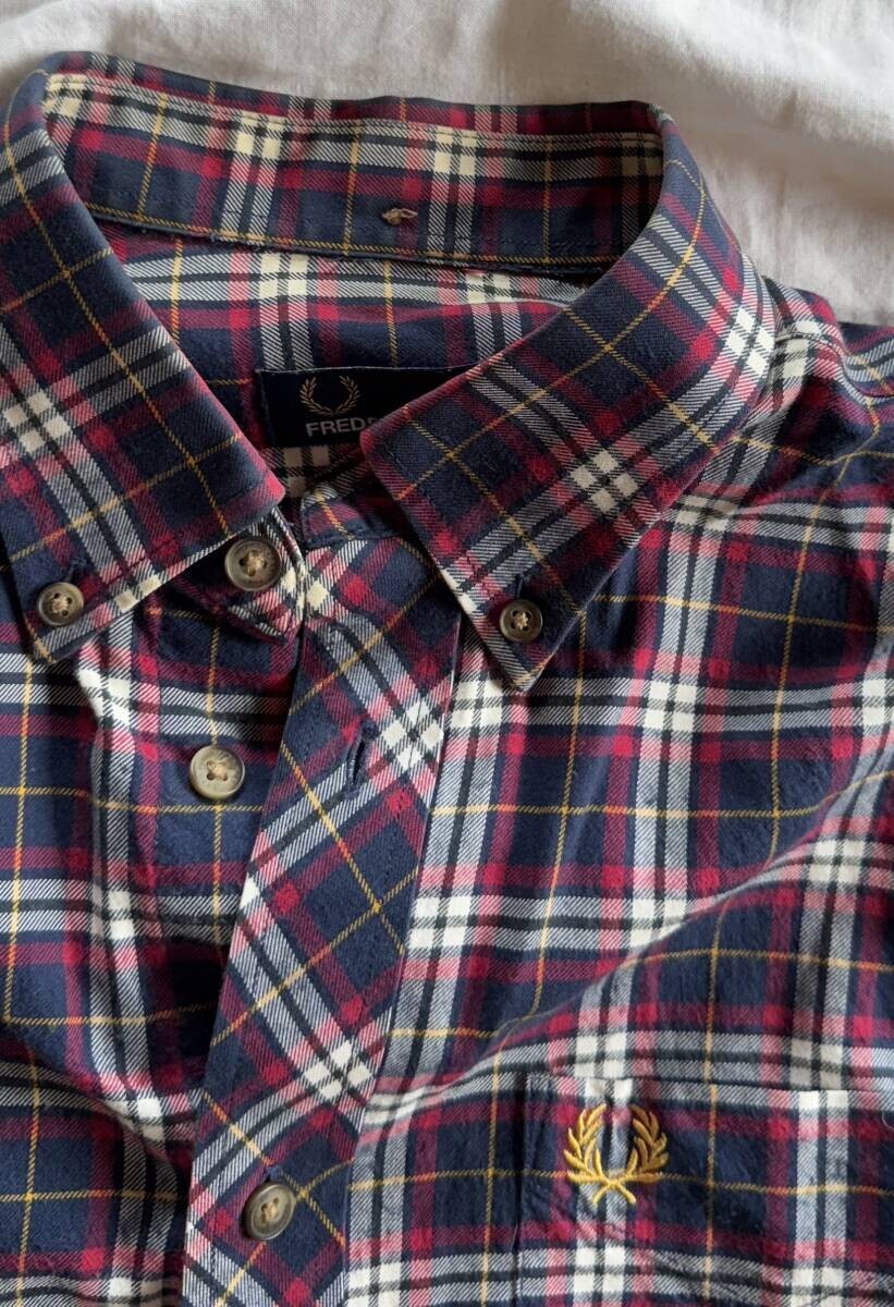 フレッドペリー チェック 長袖シャツ  ボタンダウン s 高級タイプ
