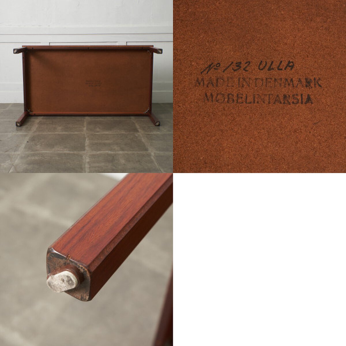 希少高級材ローズウッドを使用した明瞭で個性の強い木目が目を引くセンターテーブル。抽象画のような幾何学模様のタイルがはめ込まれ、空間に個性とアクセントをプラスします。実用的でありながらも作り手のこだわりを感じさせる、北欧家具黄金期のヴィンテージファニチャーです。