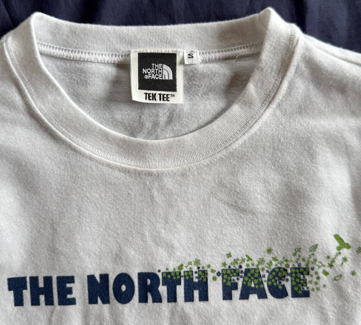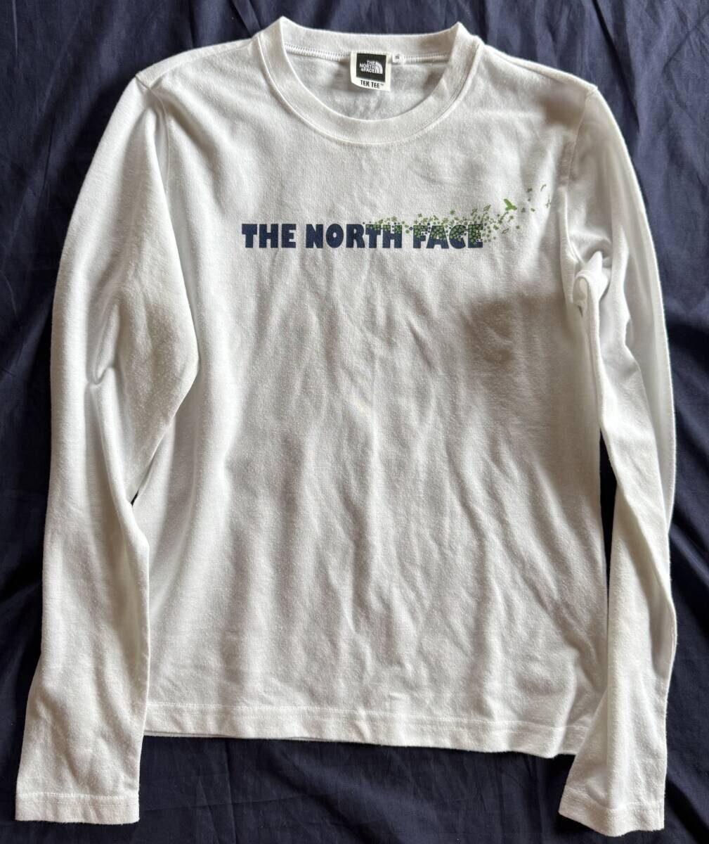 ノースフェイス 長袖 Tシャツ 白 柄物 S シンプル 小さめ
