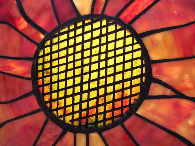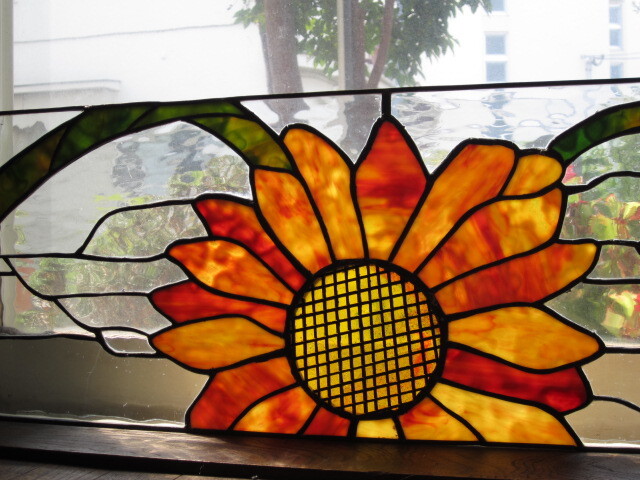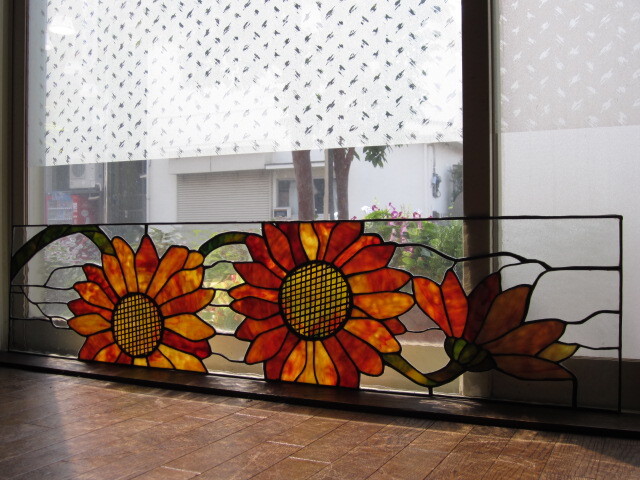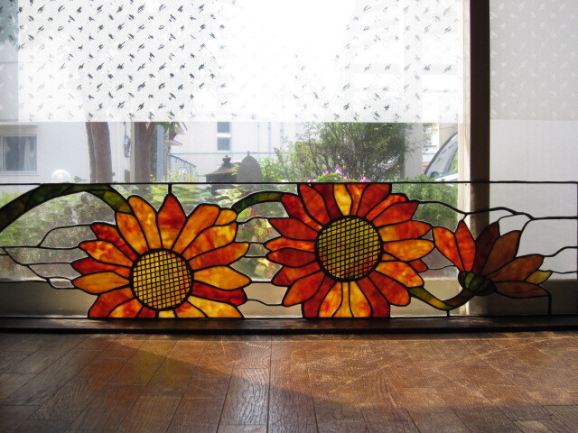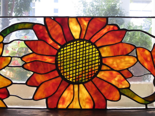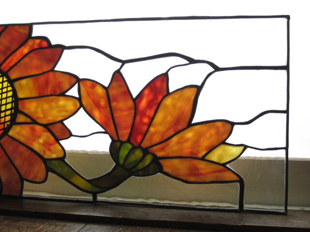 希少 逸品 ステンドグラス 花文様 建具 W1296mm x H296mm/窓/欄間/色ガラス/電笠/氷コップ/アンティーク/大正昭和レトロ/洋館