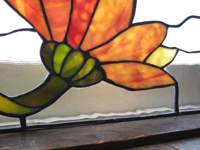 色鮮やかな美しい模様を様々なガラスで彩ったステンドグラスの建具。光を差し込むと優しい色合いを魅せ、空間を華やかに演出してくれます。ご自宅やお店の雰囲気作りにいかがですか・・・その他、ご使用に問題のある大きなダメージ等は御座いませんが、ステンドのクリア部分に2か所ほど、わずかな傷が見られます。差ほど目立ちませんが、あくまでも中古品となりますので古い物にご理解頂ける方のみご入札下さいますよう宜しくお願い致します。