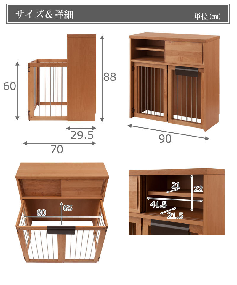 ■商品サイズ/本体:(約)幅90×奥行29.5(ケージ開き時70)×高さ88cm