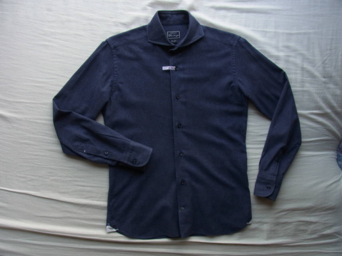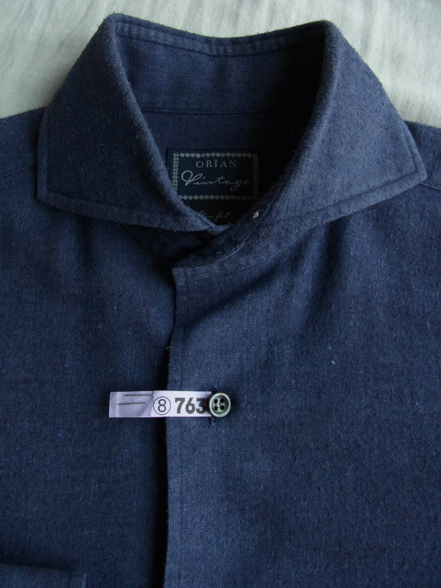 ORIAN Vintage オリアン ヴィンテージ 綿ポリエステル 起毛素材 ホリゾンタルカラーシャツ サイズ 14 1/2 - 37 ネイビー イタリア製