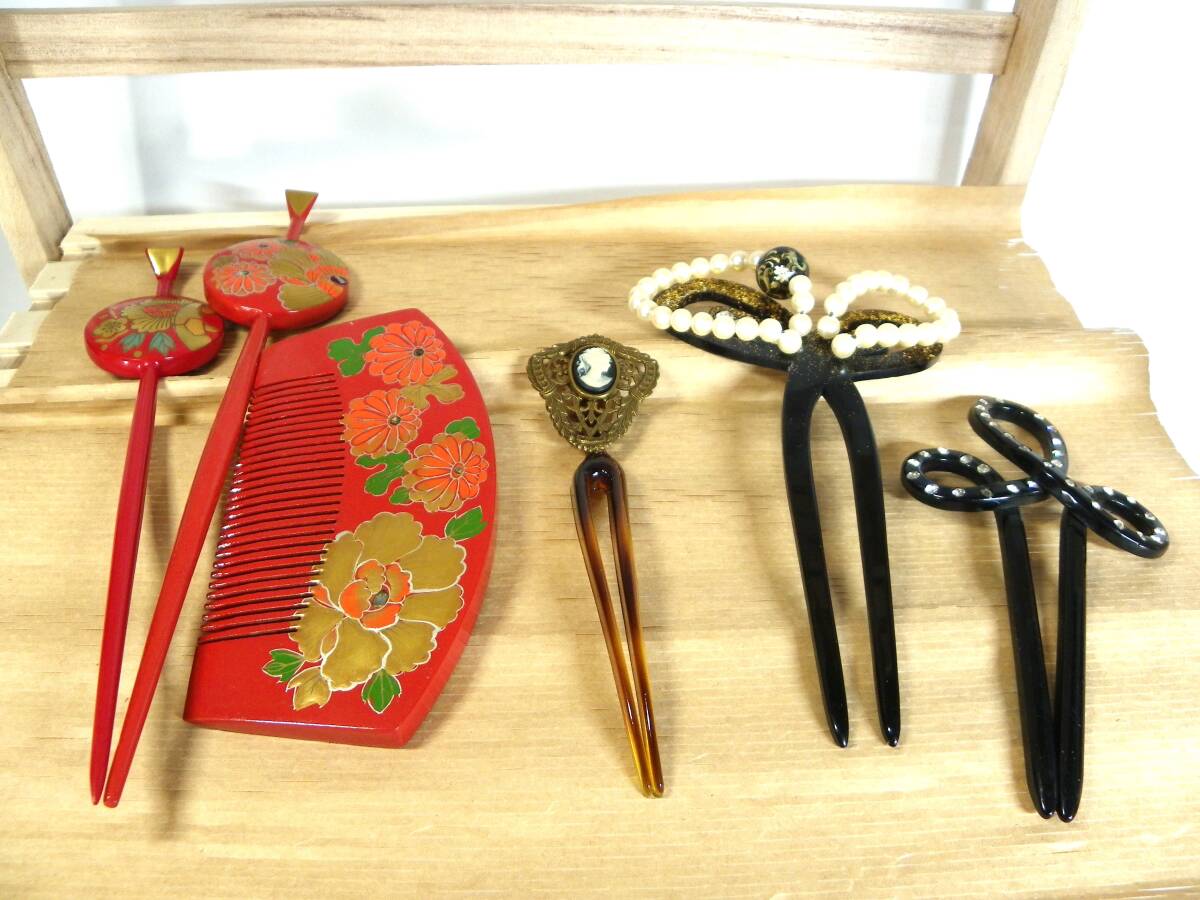 塗り簪2本 塗り櫛/1本