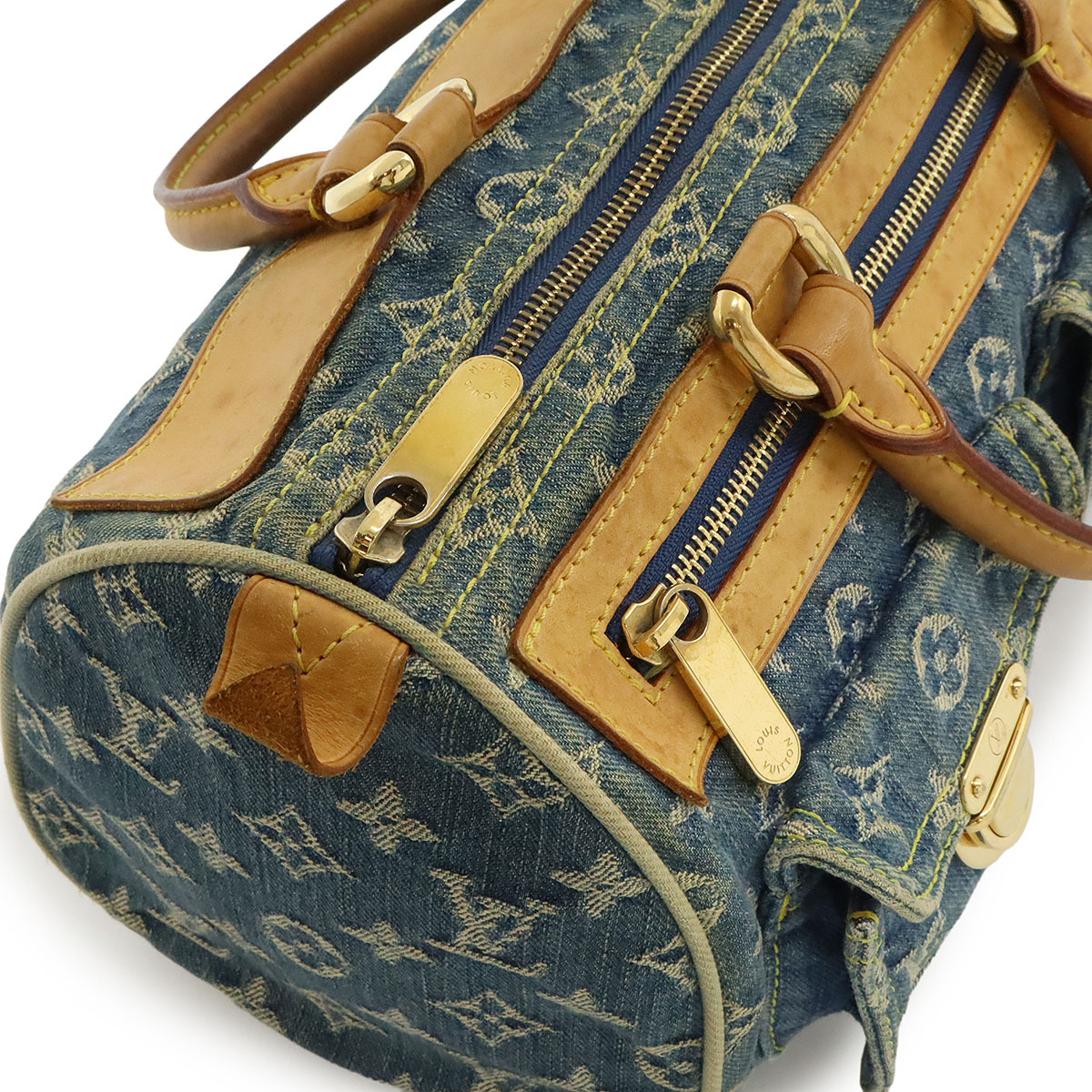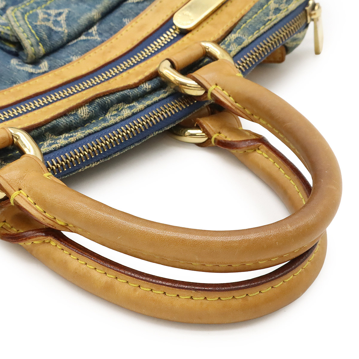 丈夫なデニム生地に充実したポケットで使い勝手の良いハンドバッグ。