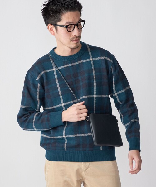 キーワード:セーター ニット メンズ クルーネック チェック 長袖