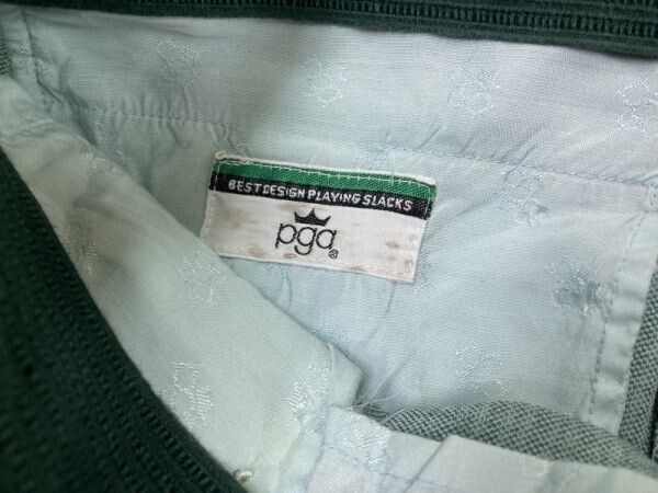 PGA オールド 昭和レトロ ゴルフ スポーツ 古着 マルチストライプ スラックス トラウザーズ パンツ ボトムス メンズ 緑 です。