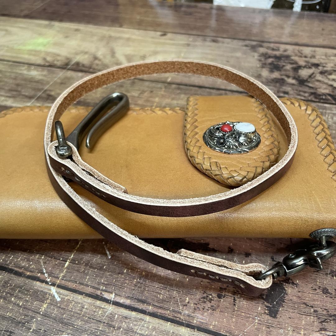 本革製のウォレットロープになります。編み込まれていない1本タイプです。