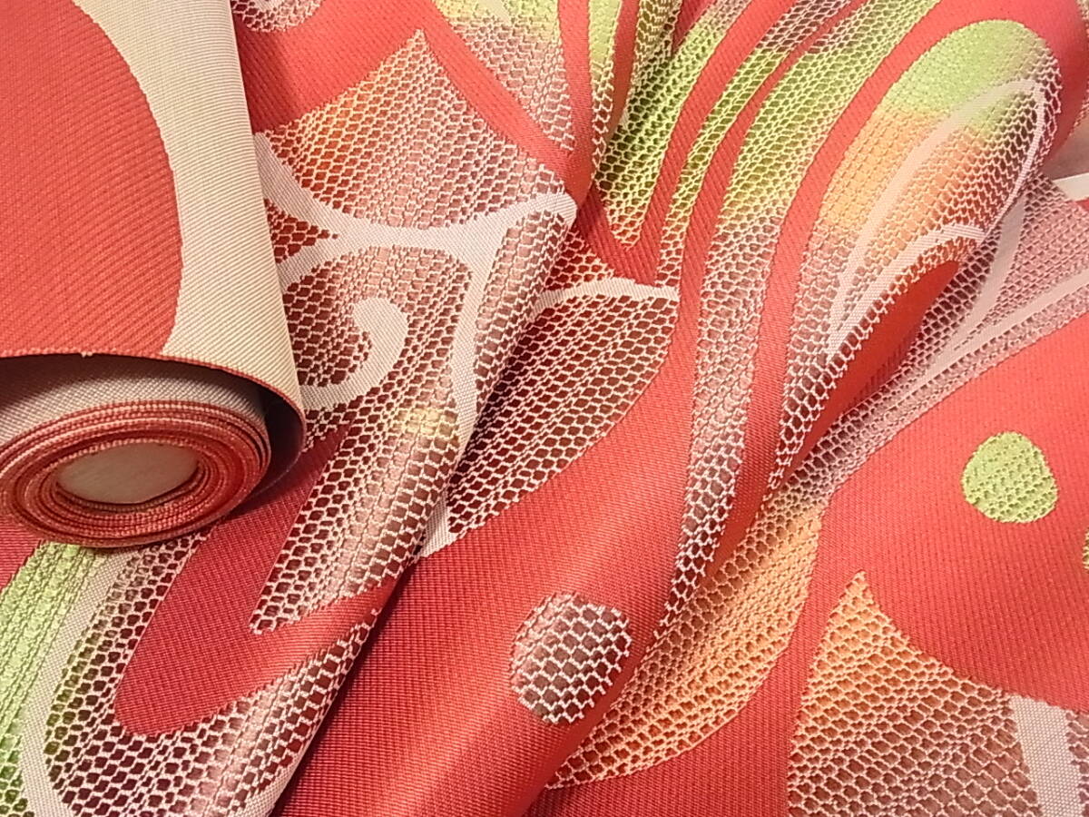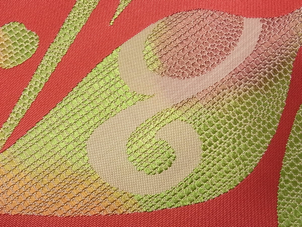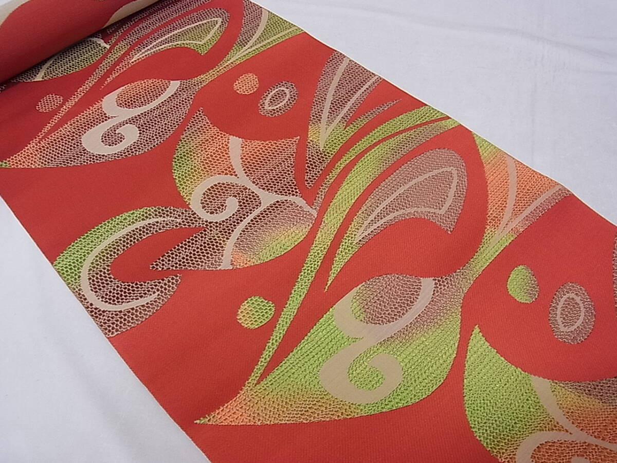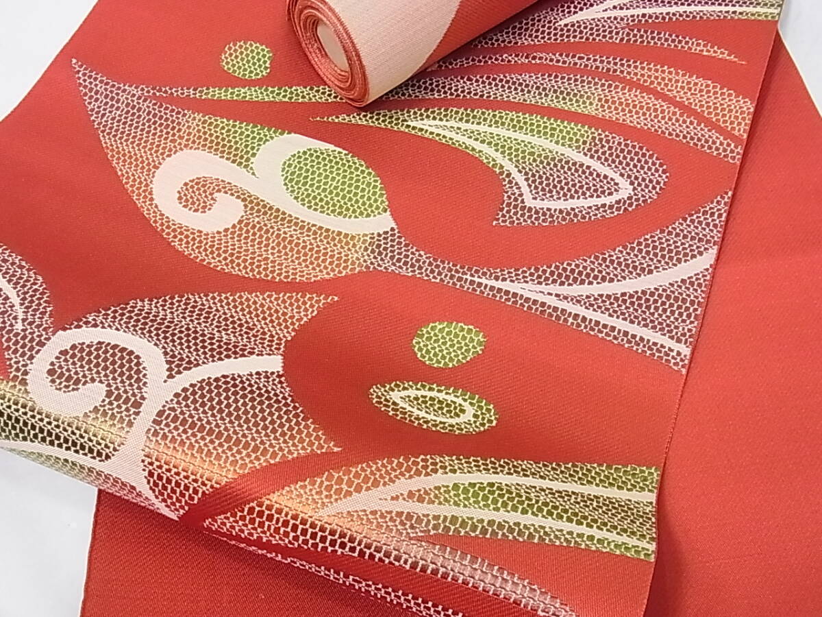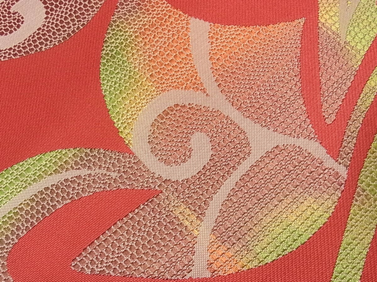 着物おきな2★未使用品 本場筑前博多織 名古屋帯 帯反物 唐草文 正絹 美品★r4165