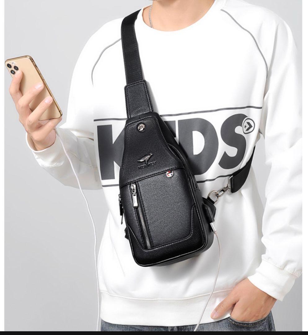 ◆USBポート付き高品質牛革のボディバッグです