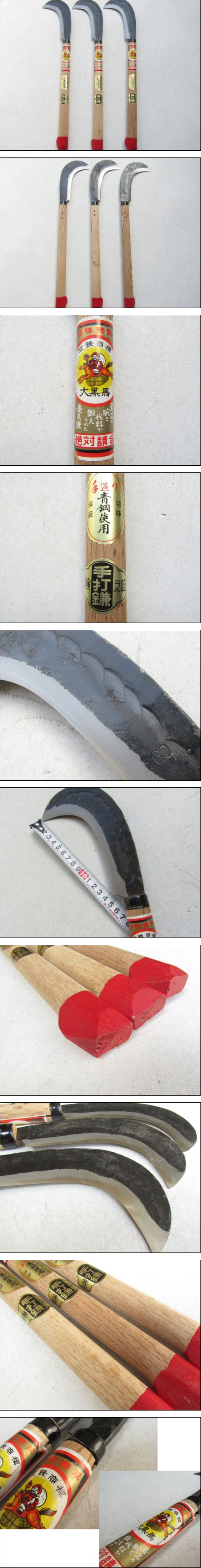 ■■(55)手打鎌 大黒馬 青鋼使用 手造り 3本まとめて 全長52㎝ 草刈り 雑草 林業 山林 伐採 農具■■ | |||