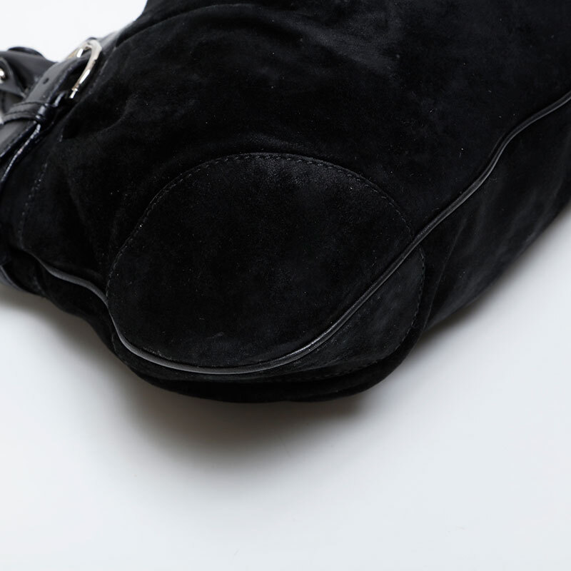 極美品 Salvatore Ferragamo スウェード シルバー金具 ハンドバッグ ブラック