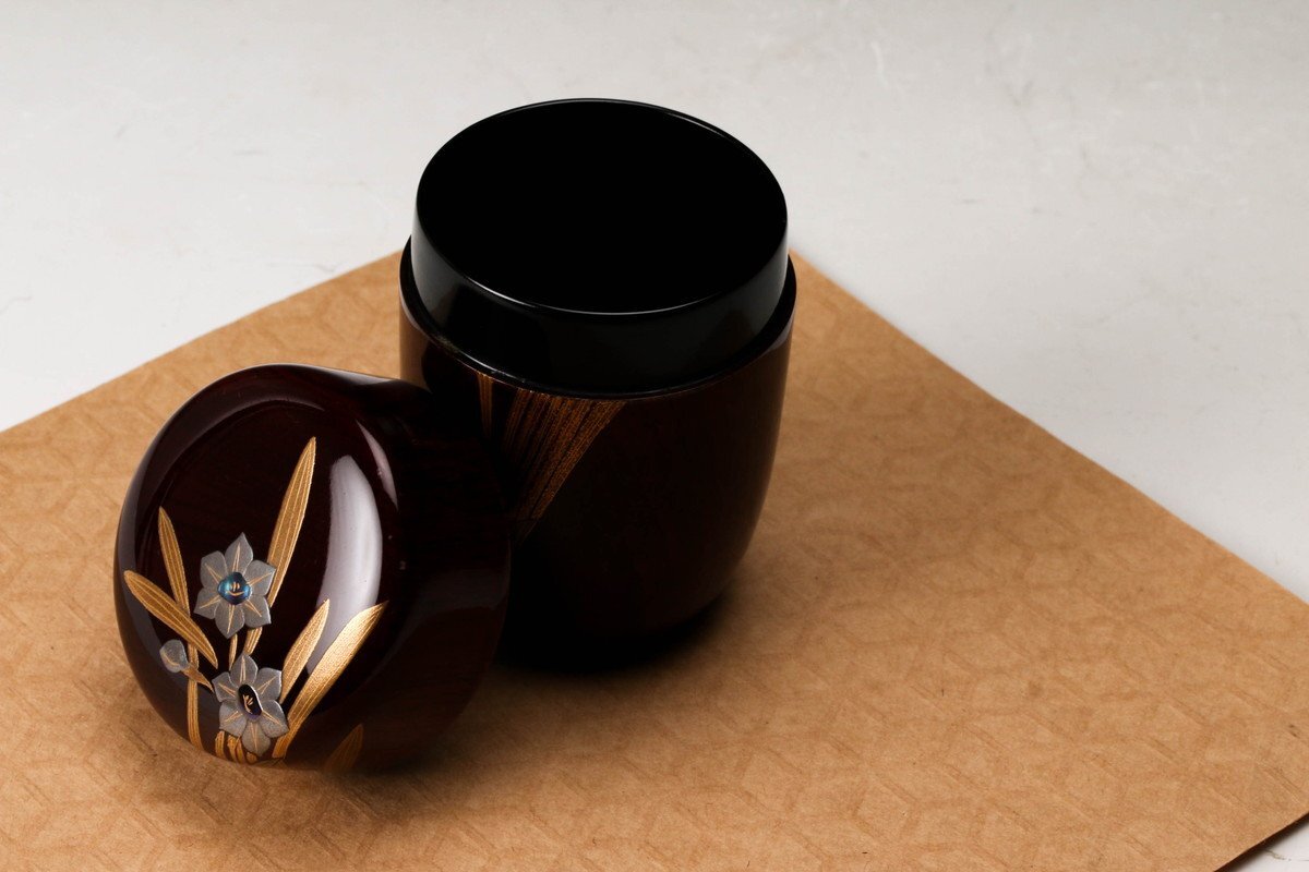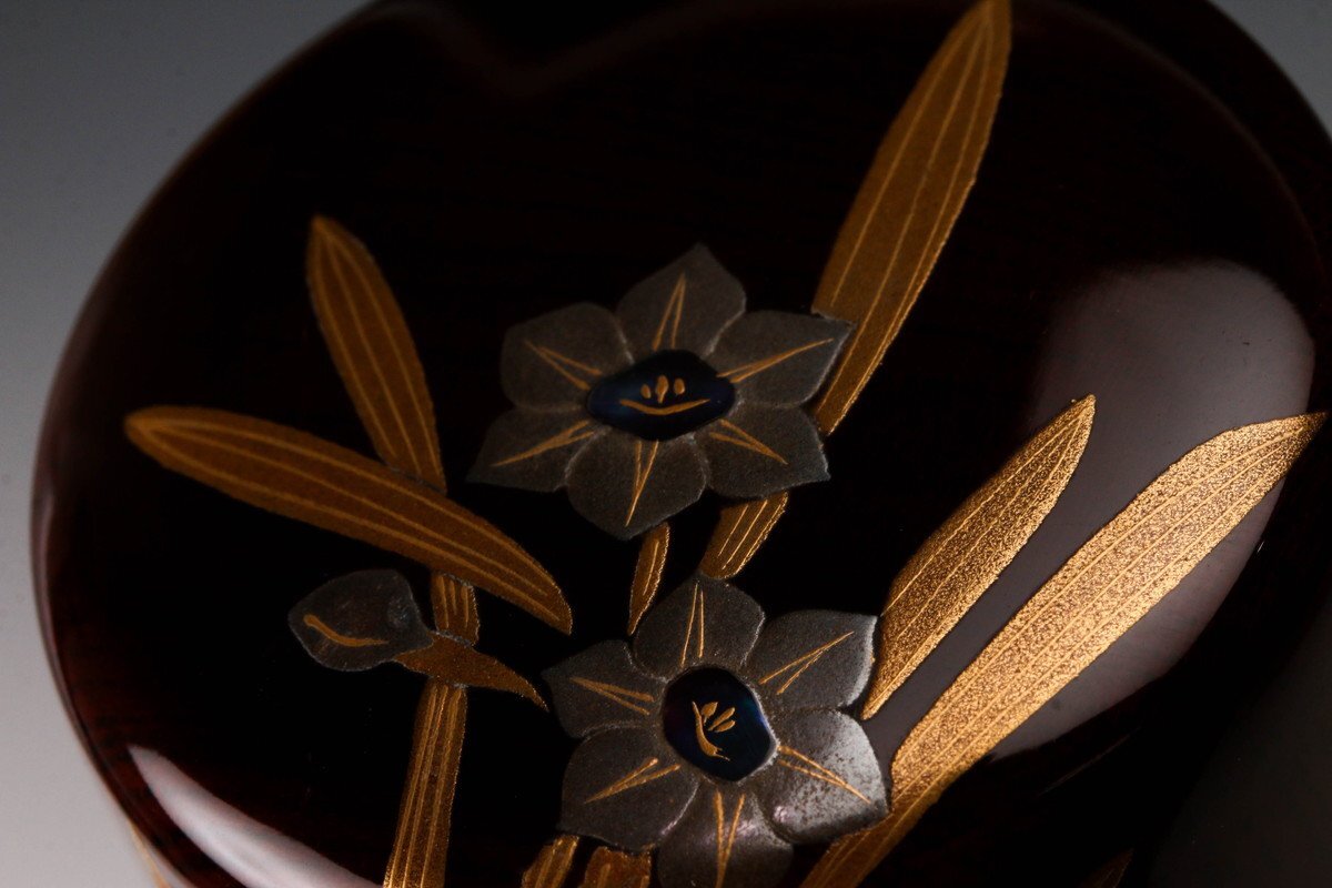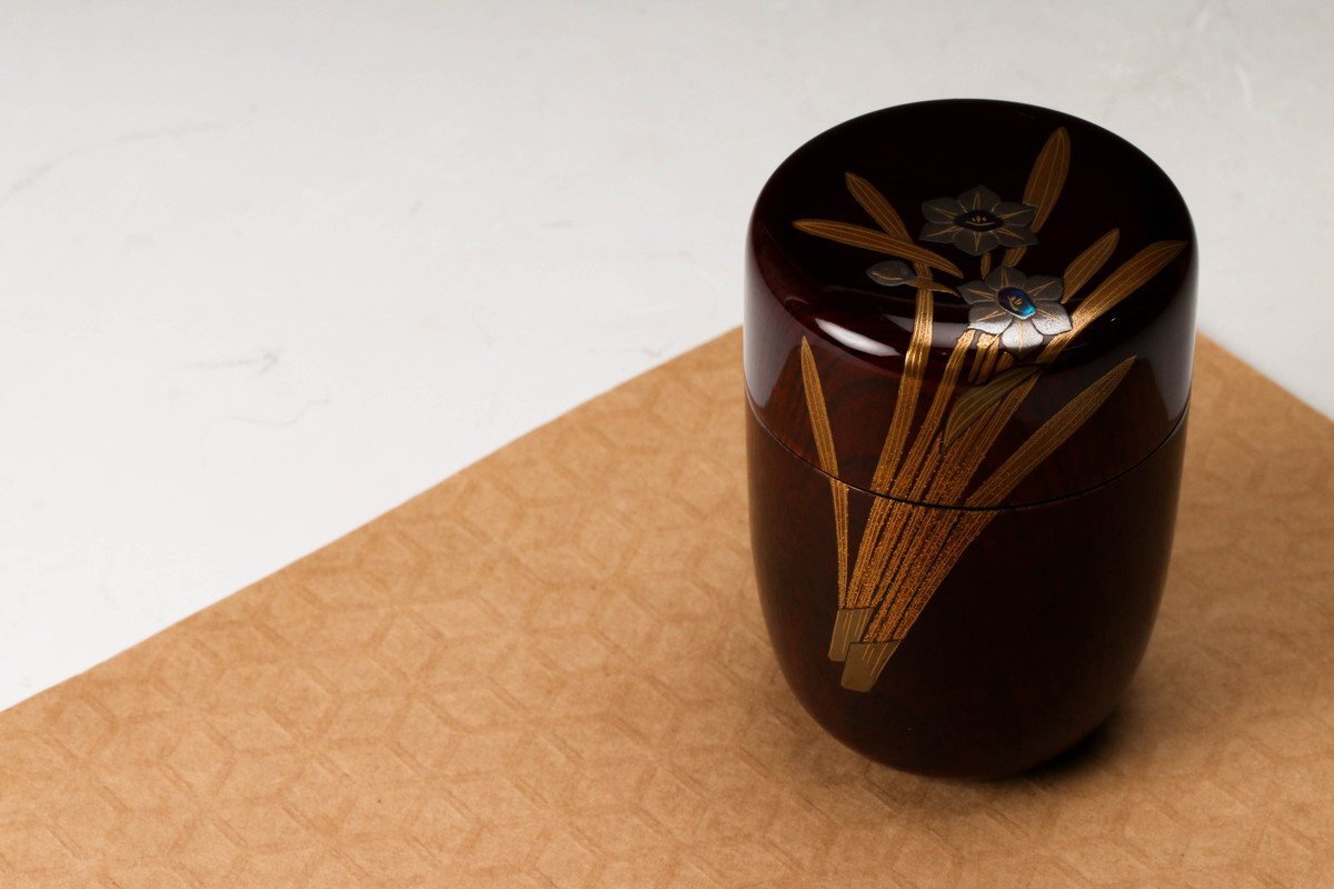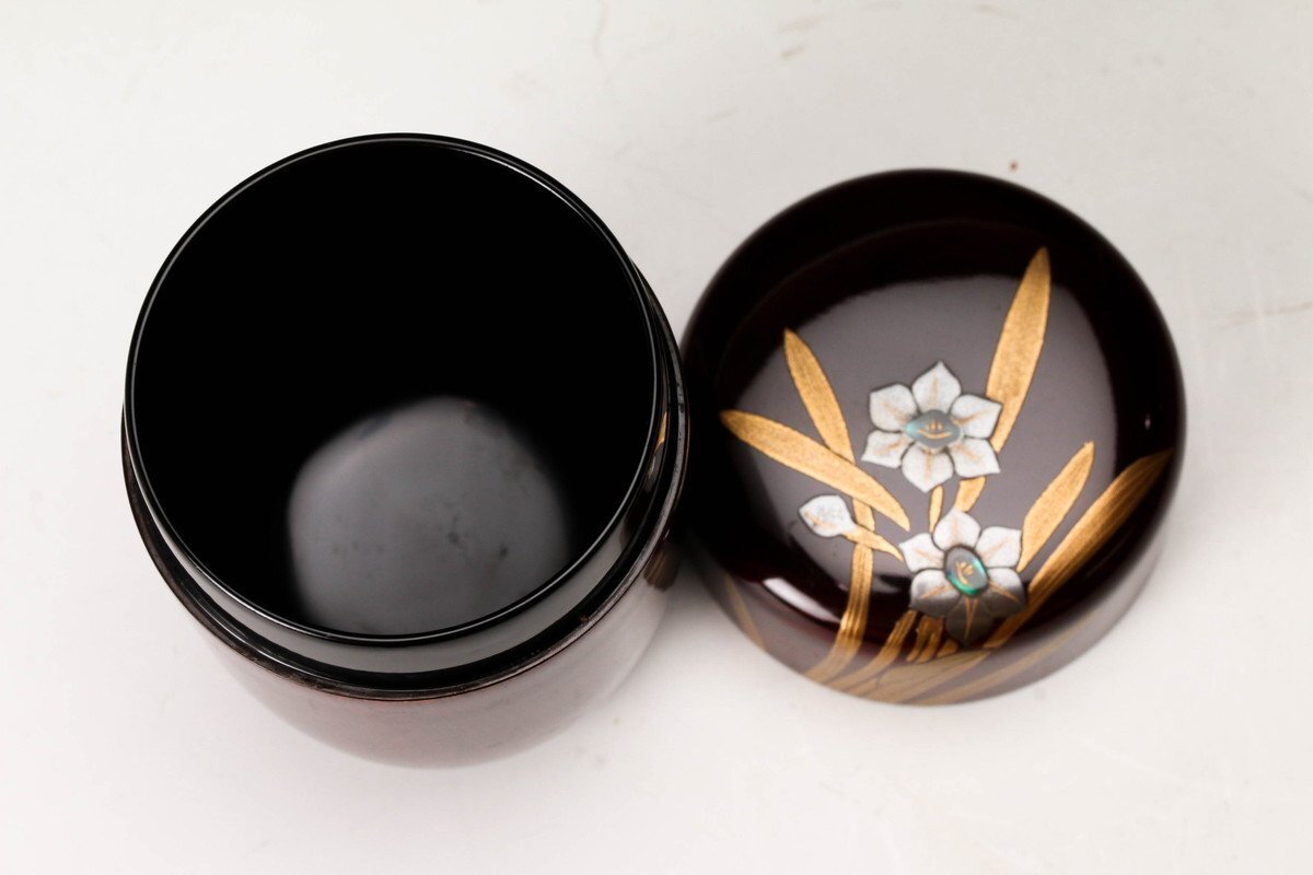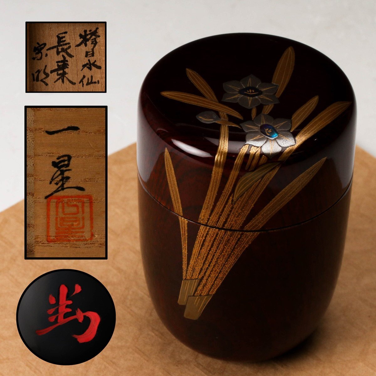 【佳香】箕輪一星 螺鈿水仙蒔絵長棗 花押 共箱 茶道具 本物保証