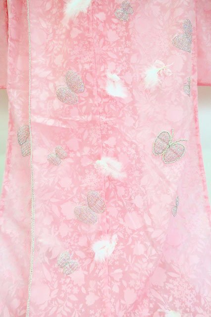 美品 オーガンジー打掛 淡いピンク色 身丈237cm 蝶々 羽根 ラメ レース 豪華絢爛 花嫁 結婚式 kimono 仕立て上がり 着物フィ 19718 |