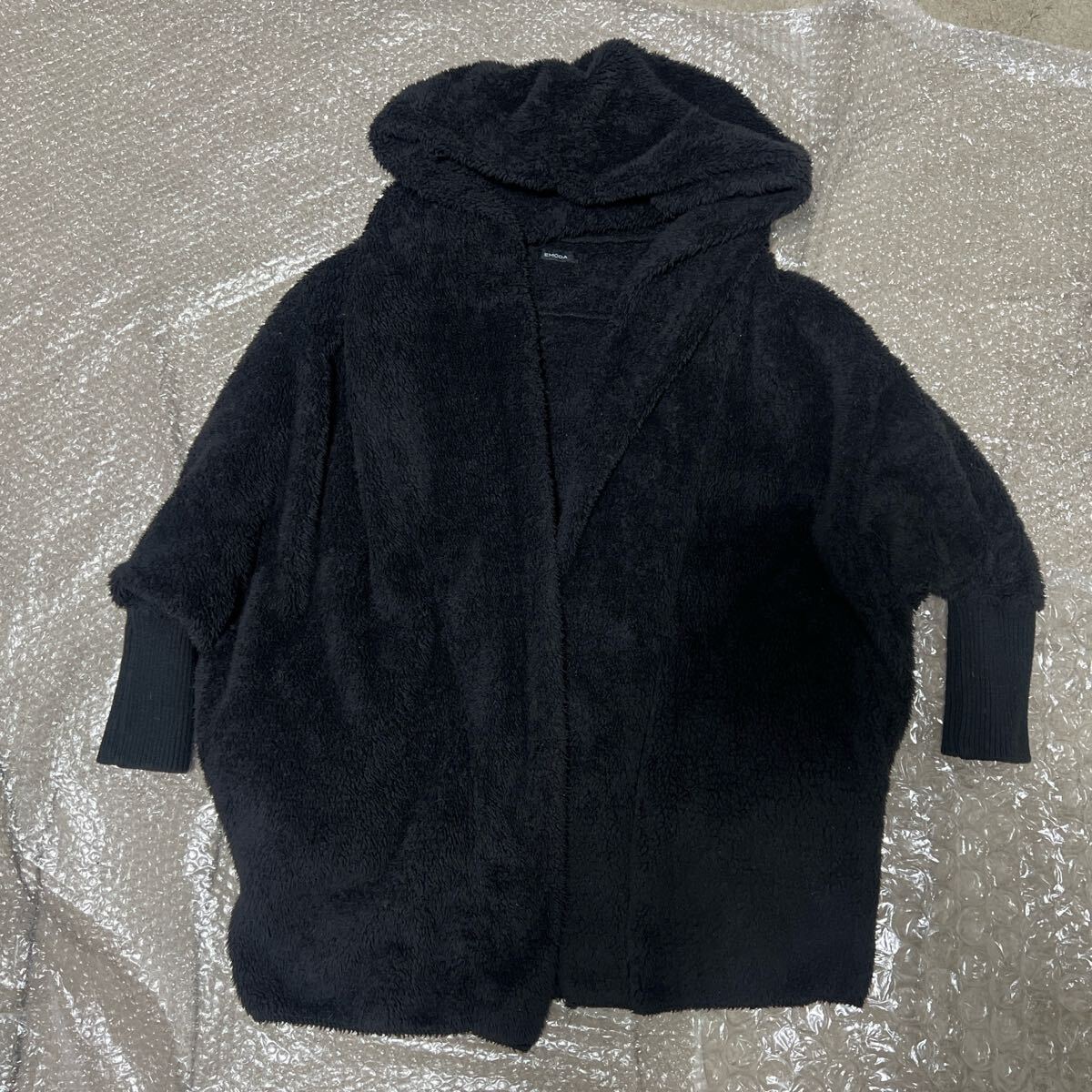 柔らかいフリース素材のブラック(黒)フード付きジャケット。
