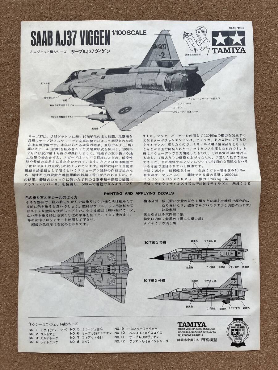 サーブAJ37 ヴィゲン  未組み立て   送料180円〜