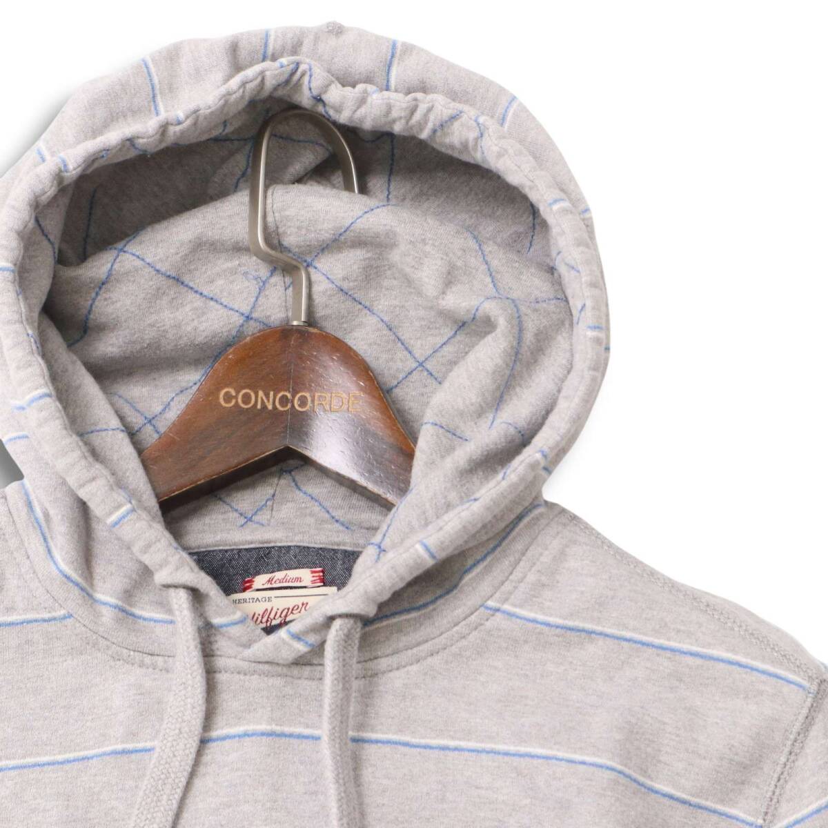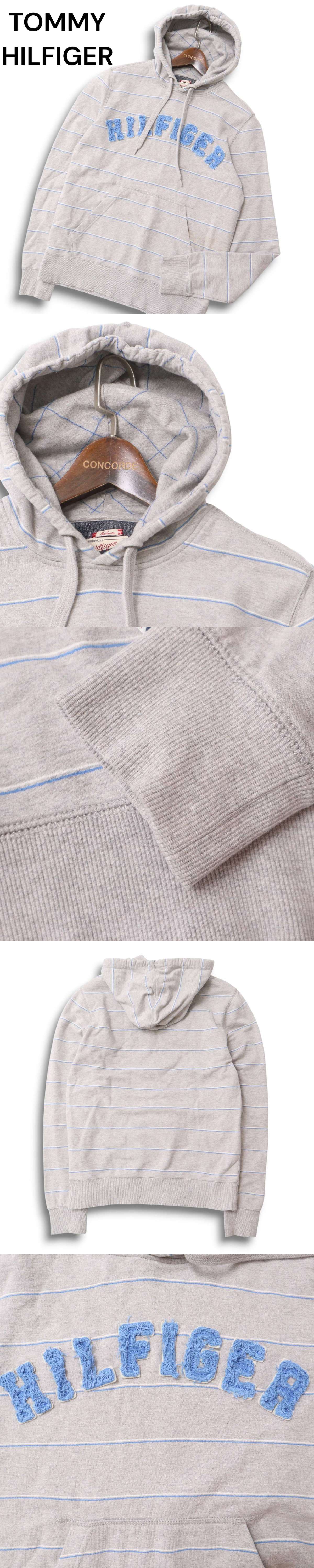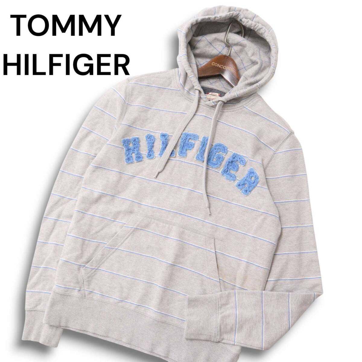 HILFIGER DENIM トミーヒルフィガー 通年 ロゴワッペン★ スウェット ボーダー プルオーバー パーカー Sz.M メンズ グレー